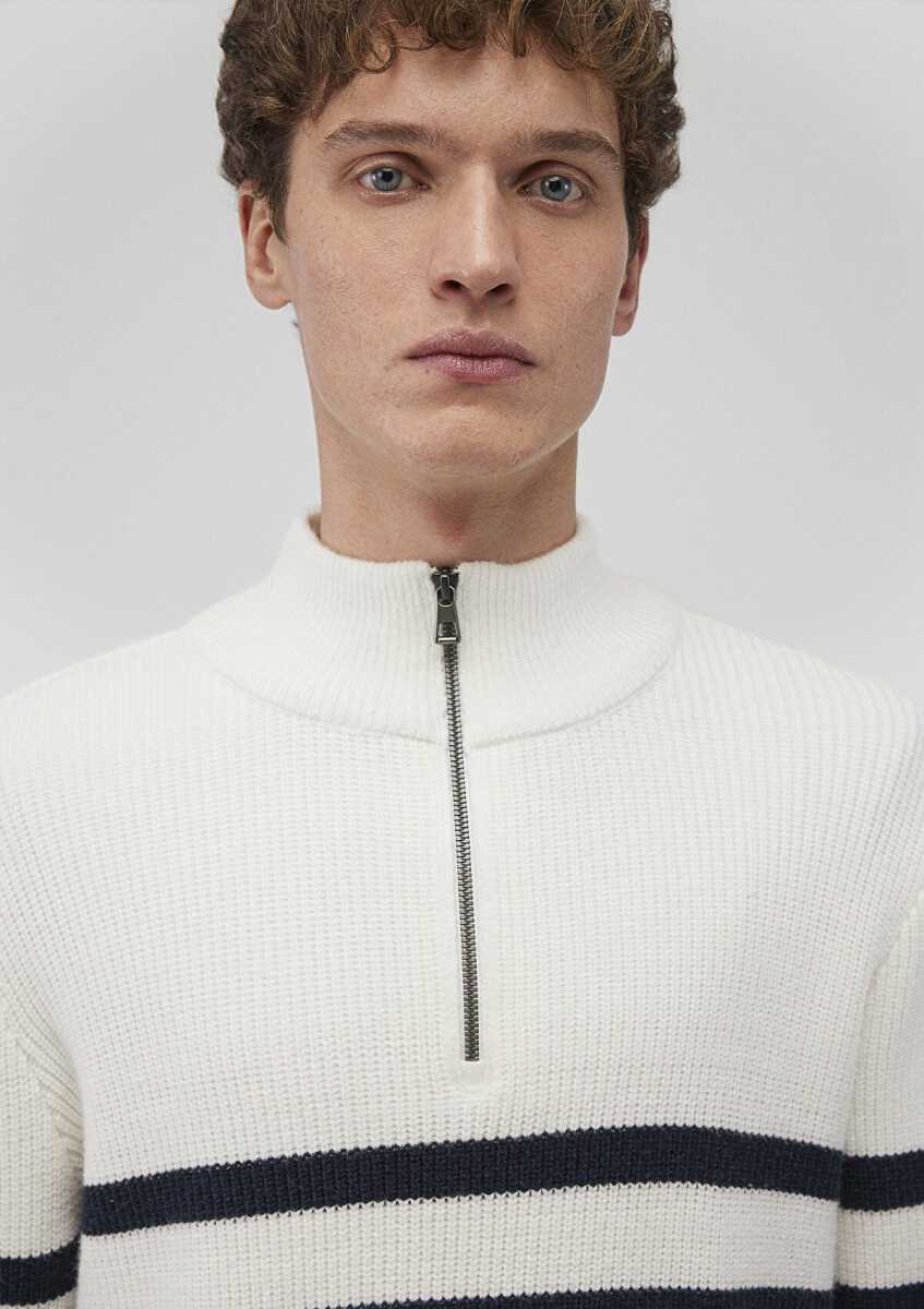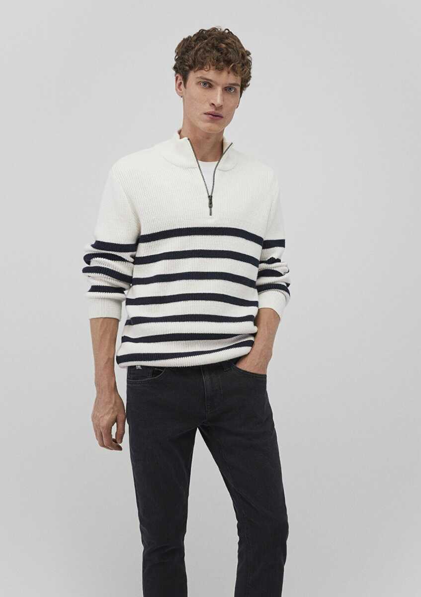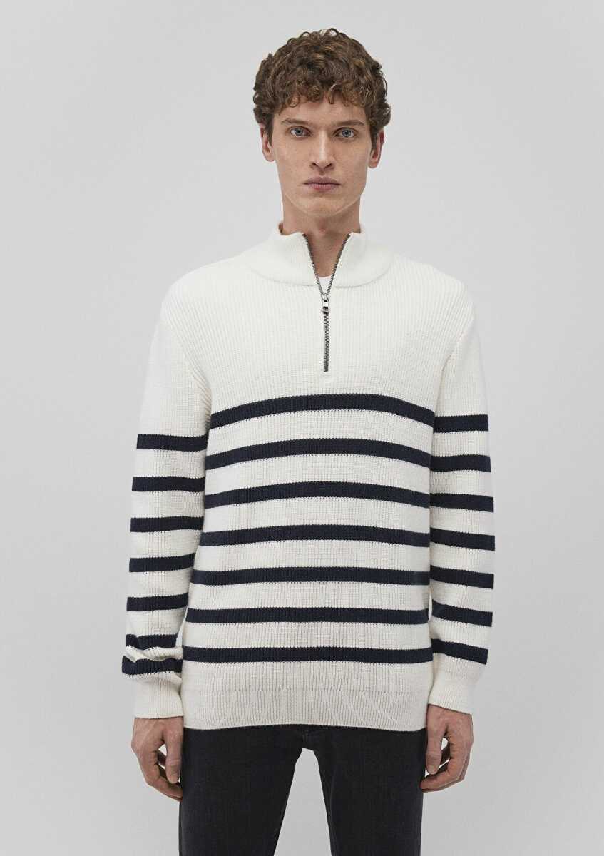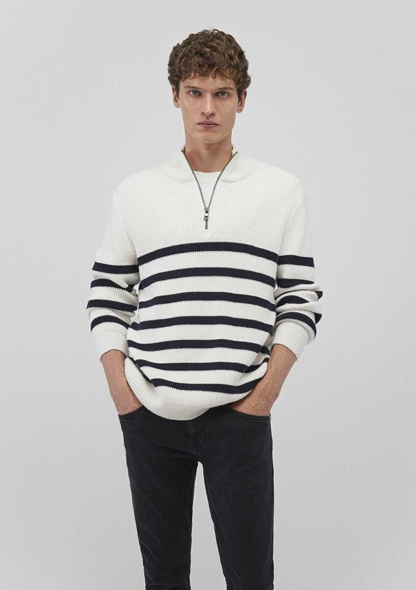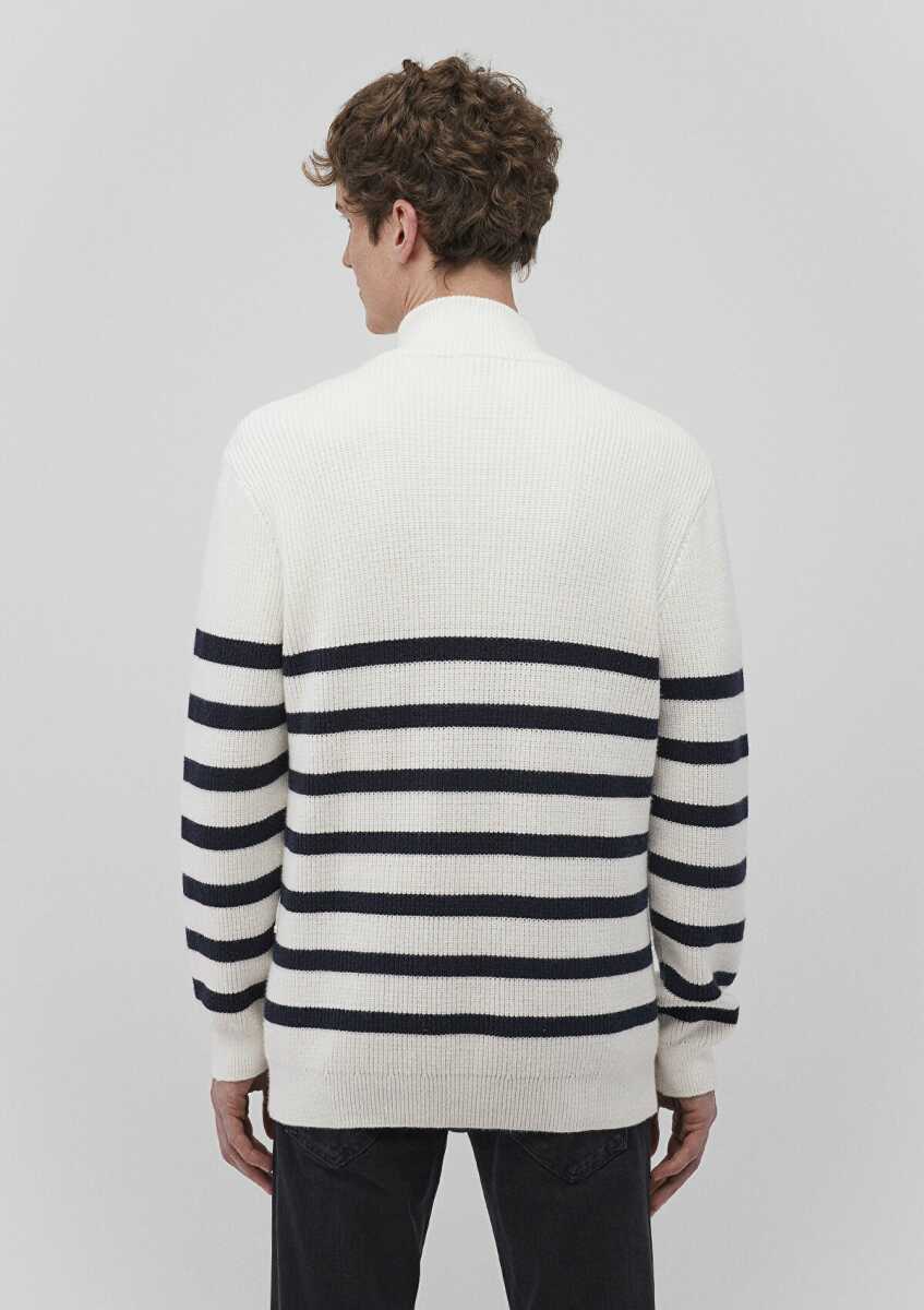 Mavi Kırık Beyaz Çizgili Fermuarlı Erkek Kazak 0710131-70057
