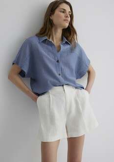 Mavi Kısa Gollu Kadın Gömlek 1210758-89861