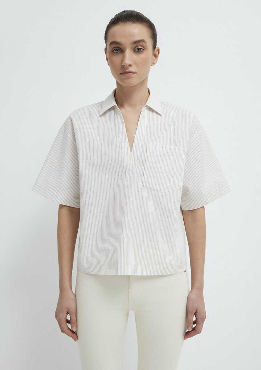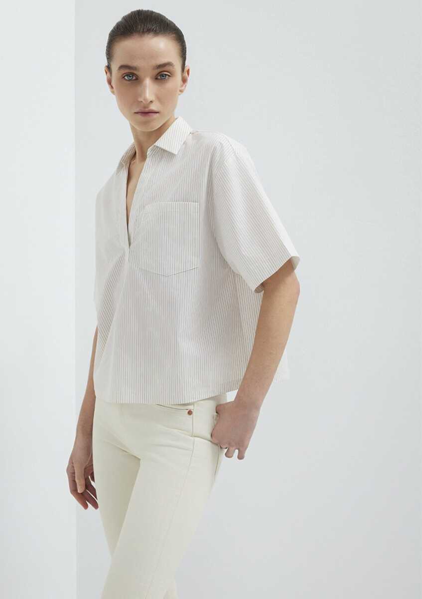 Mavi Kısa Kollu Cepli Ekru Loose Fit Kadın Bluz 1211377-82759