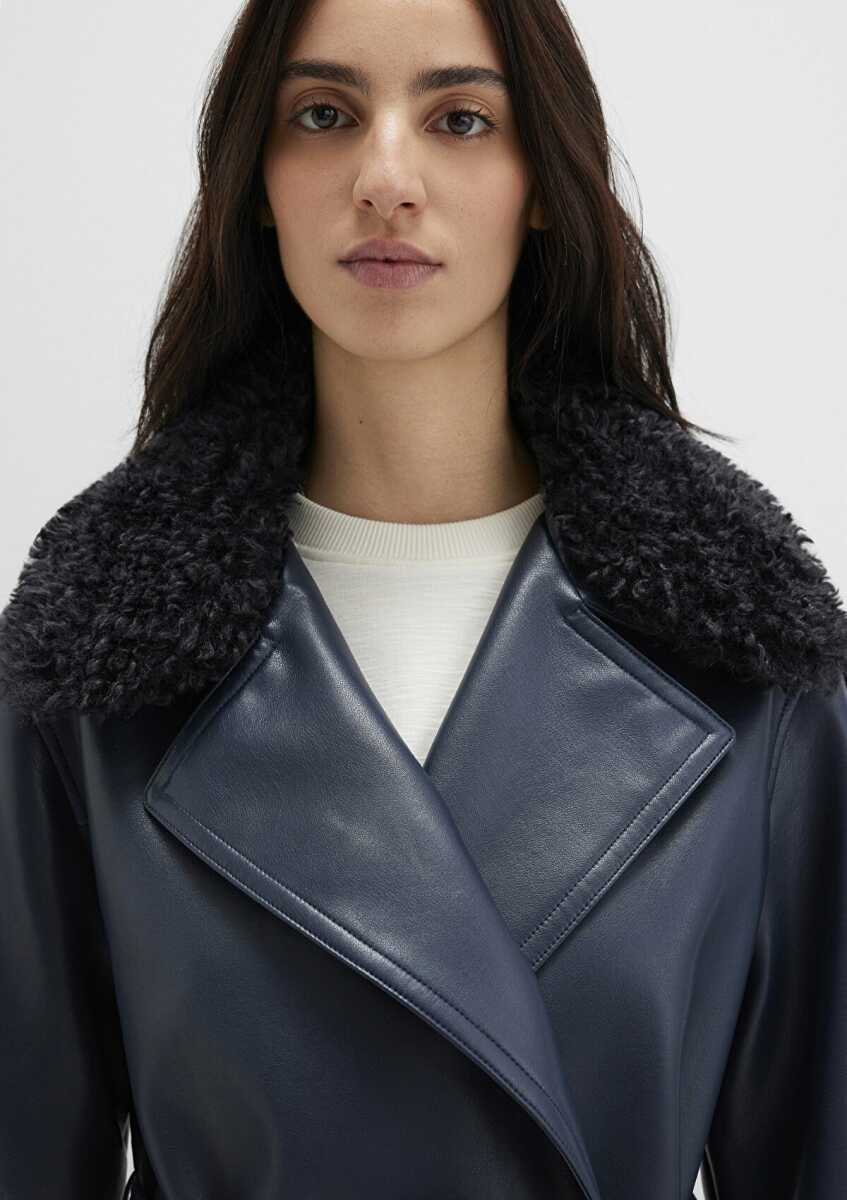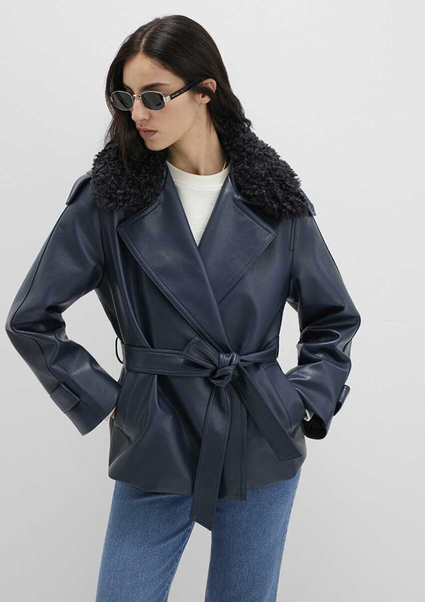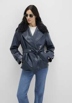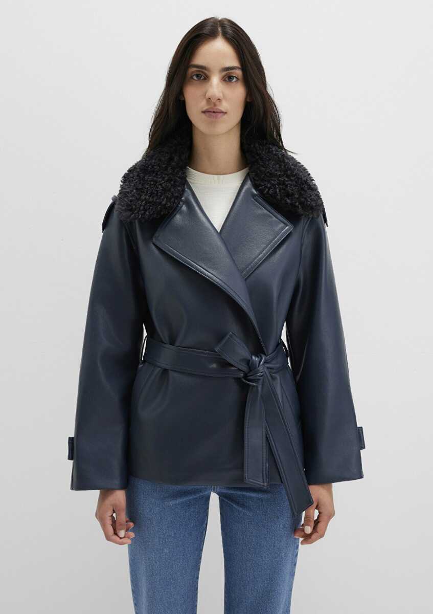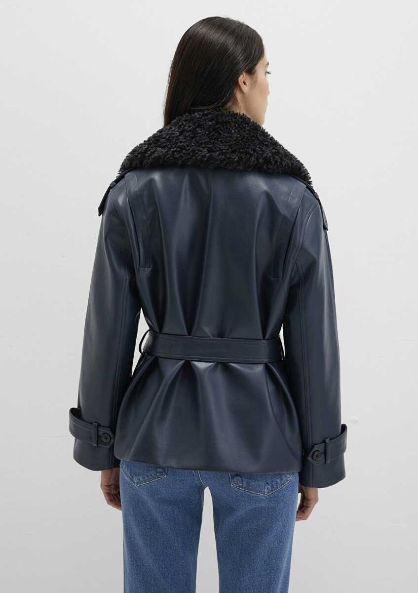 Mavi Lacivert Suni Kürk Detaylı Suni Kadın Deri Ceket 1110717-87822