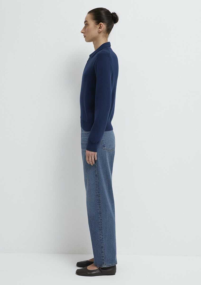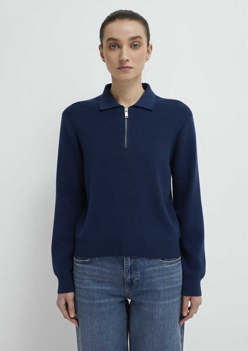 Mavi Lacivert Yarı Fermuarlı Kadın Triko Polo 1710842-70497