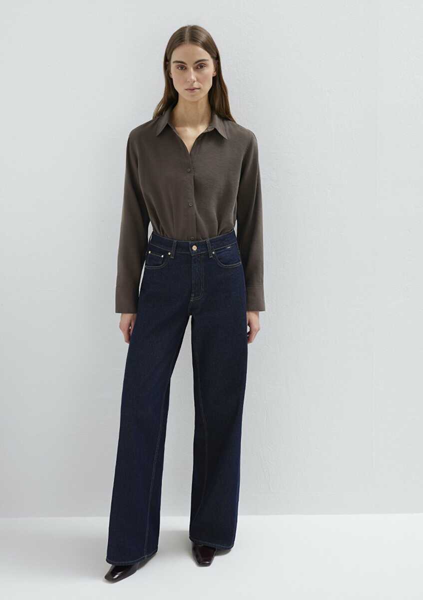 Mavi Liyosel Karışımlı Kahverengi Tencel Regular Fit Kadın Gömlek 1211374-70238