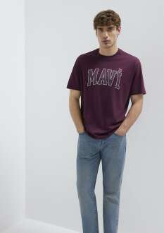 Mavi Logo Baskılı Bordo Loose Ft Erkek Tişört0611711-70434
