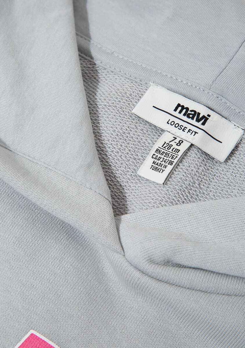 Mavi Logo Baskılı Kapüşonlu Gri Loose Fit Çocuk Sweatshirt 7S10179-70075