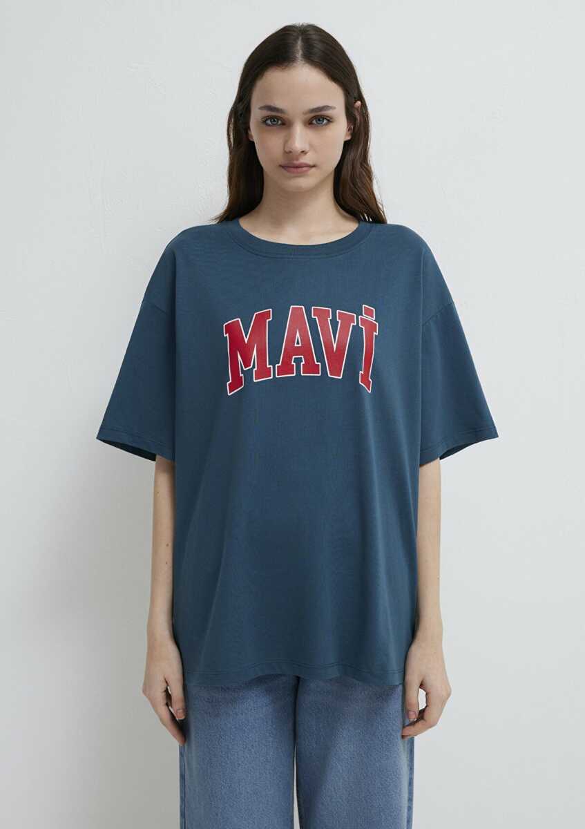 Mavi Logo Baskılı Mavi Oversize Kadın Tişört 1600843-70771