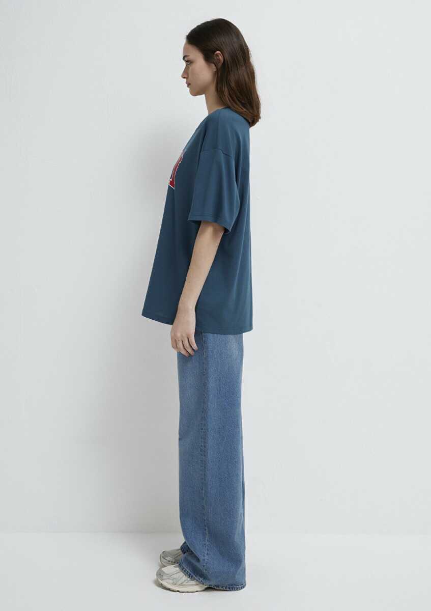 Şimdi KeşfetMavi Logo Baskılı Mavi Oversize Kadın Tişört 1600843-70771