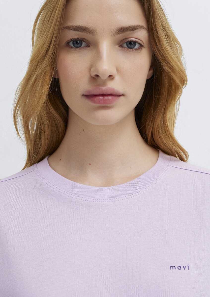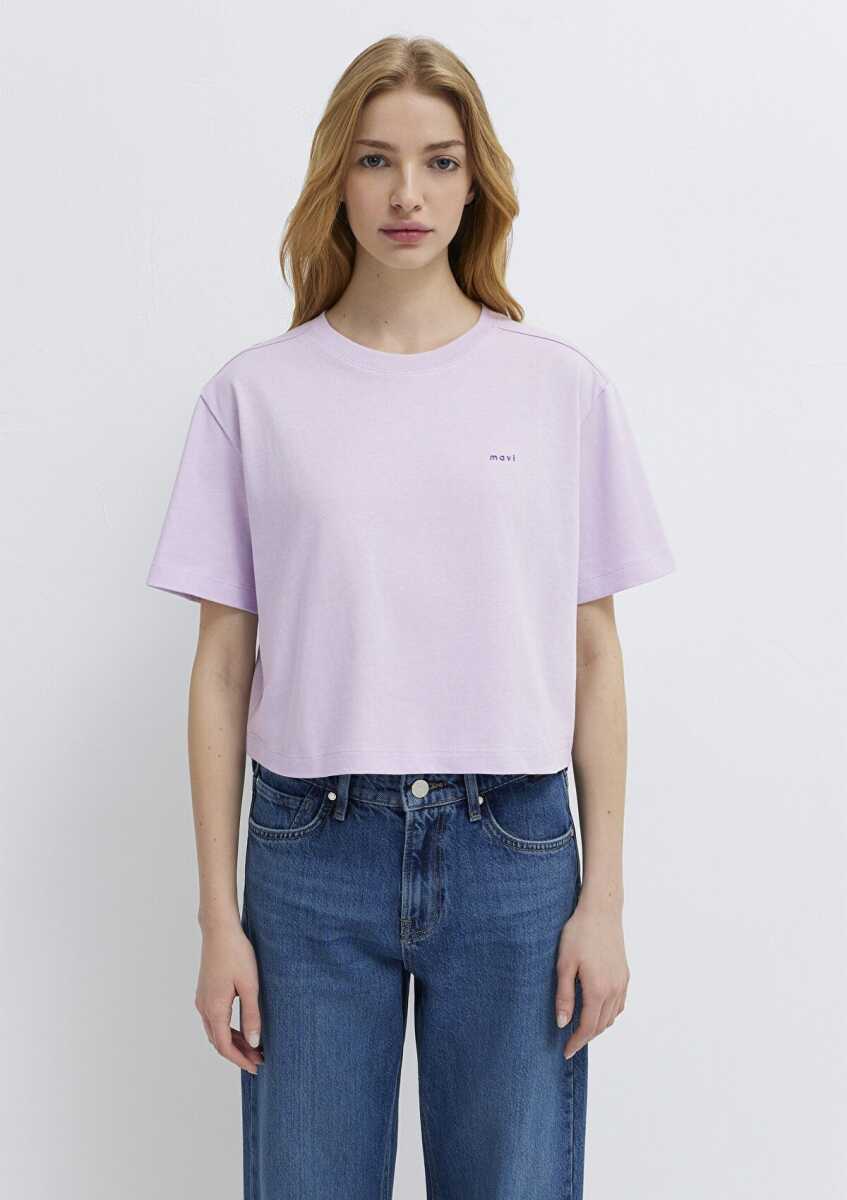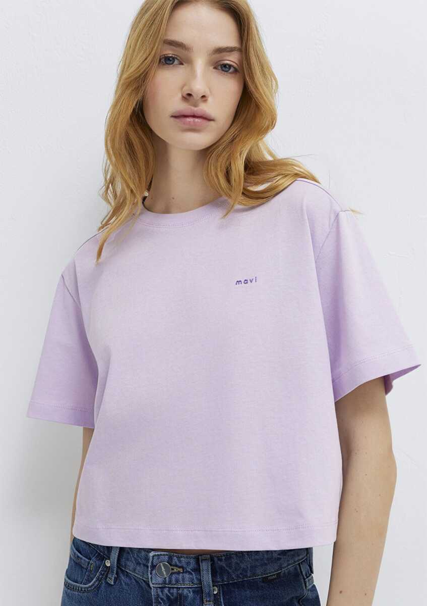 Mavi Logo Baskılı Mor Crop Kadın Tişört 1613984-70512