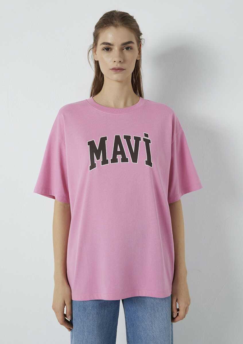 Mavi Logo Baskılı Pembe Oversize Kadın Tişört1600843-71063