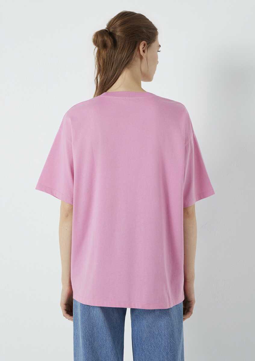 Şimdi KeşfetMavi Logo Baskılı Pembe Oversize Kadın Tişört1600843-71063