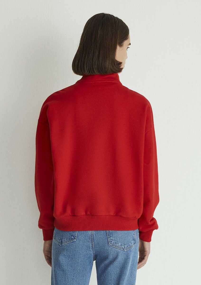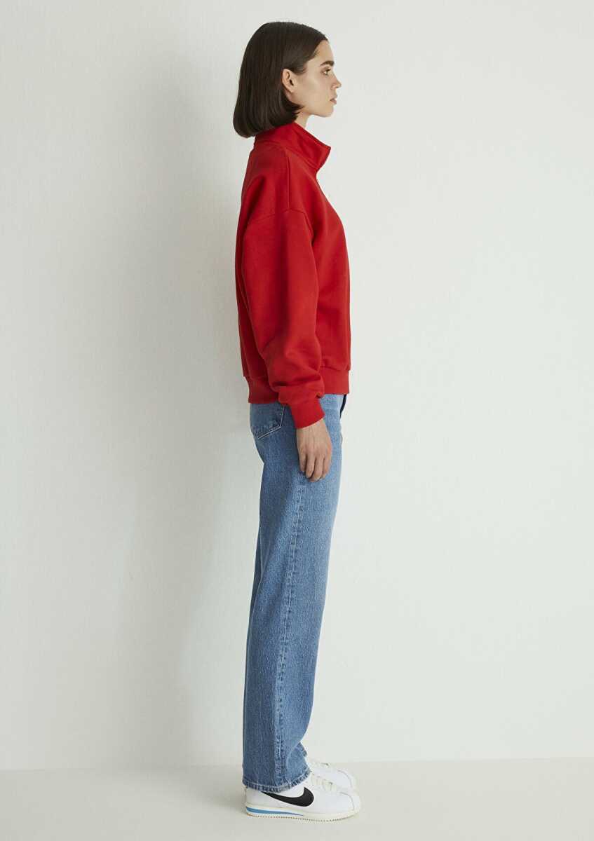 Mavi Logo Baskılı Yarım Fermuarlı Kırmızı Kadın Sweat 1S10179-86417