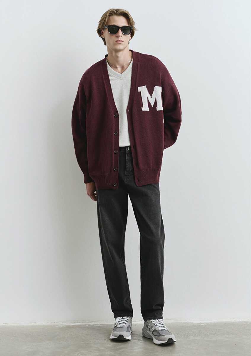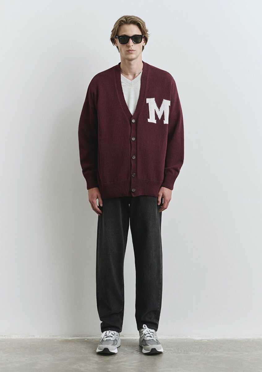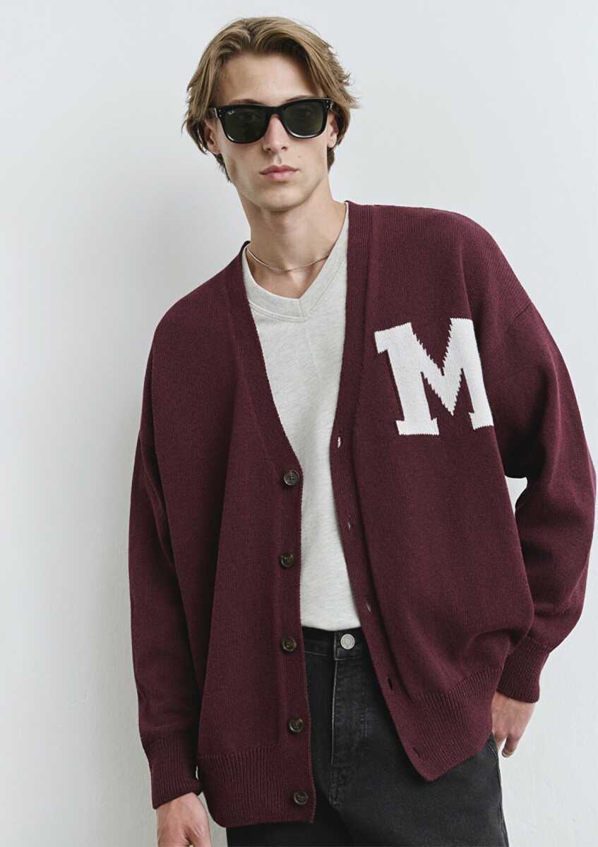 Mavi M Baskılı Bordo Oversize Erkek Hırka 0710288-70414