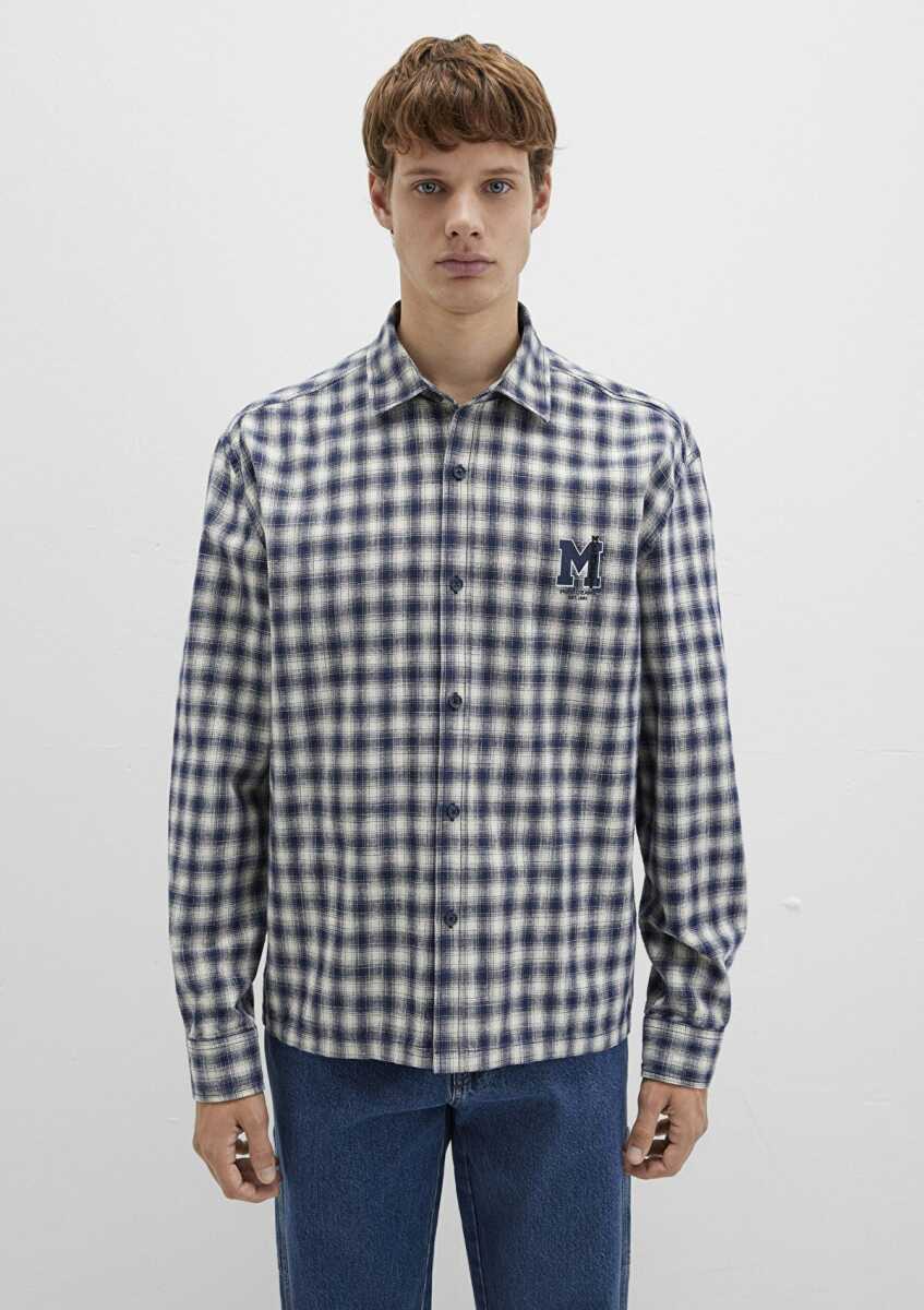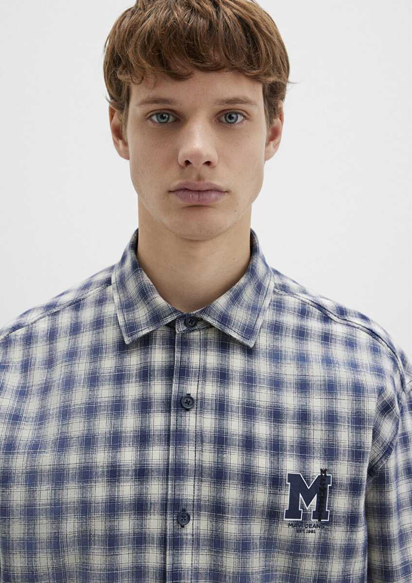 Mavi M Logo Baskılı Kareli Mavi Erkek Gömlek 0211782-91299