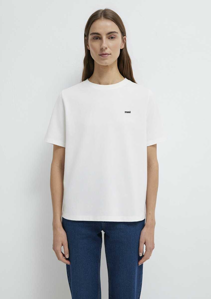 Mavi Mavi Logo Baskılı Ekru Regular Fit Kadın Tişört 1613407-70057