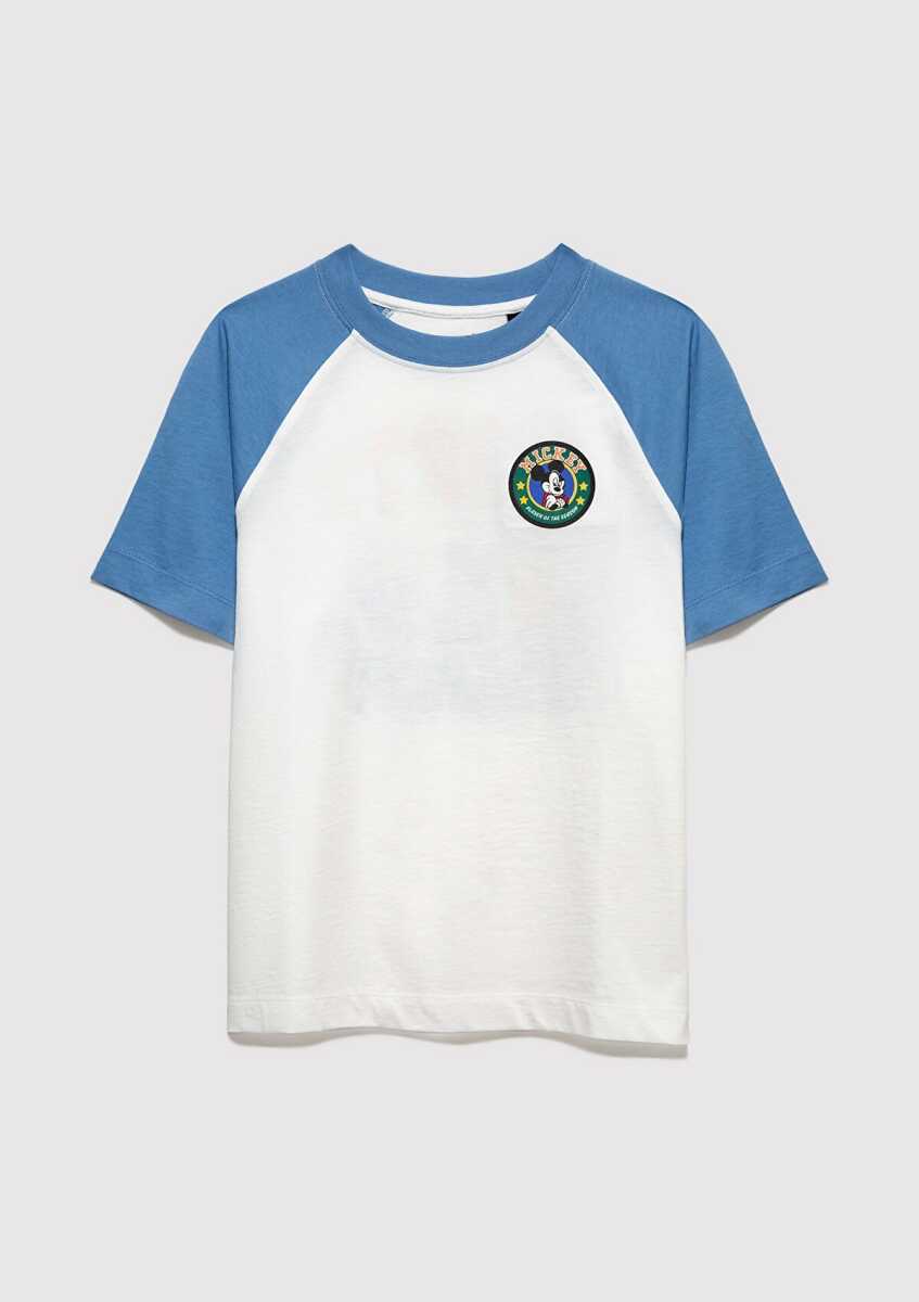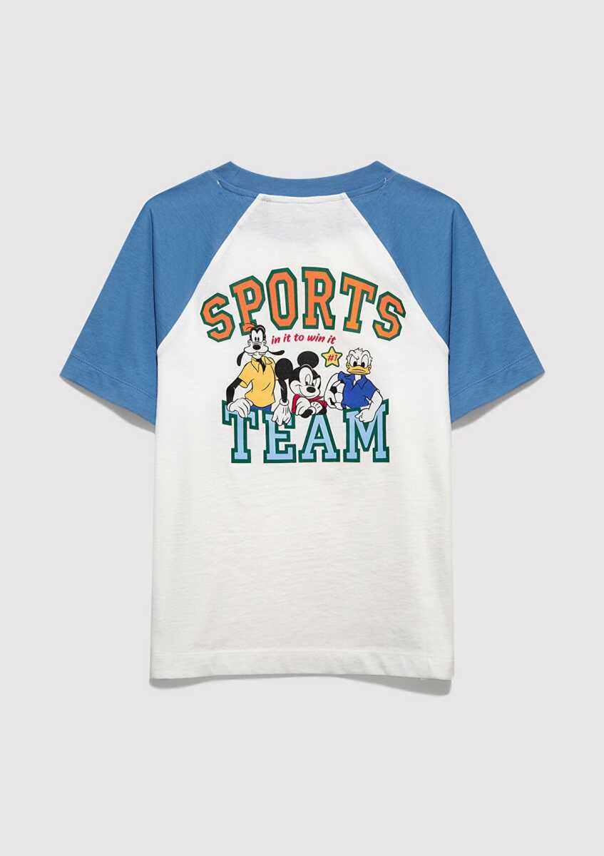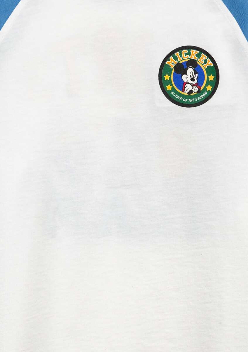 Mavi Mickey Mouse Baskılı Ekru Oversize Çocuk Tişört 6610426-70057
