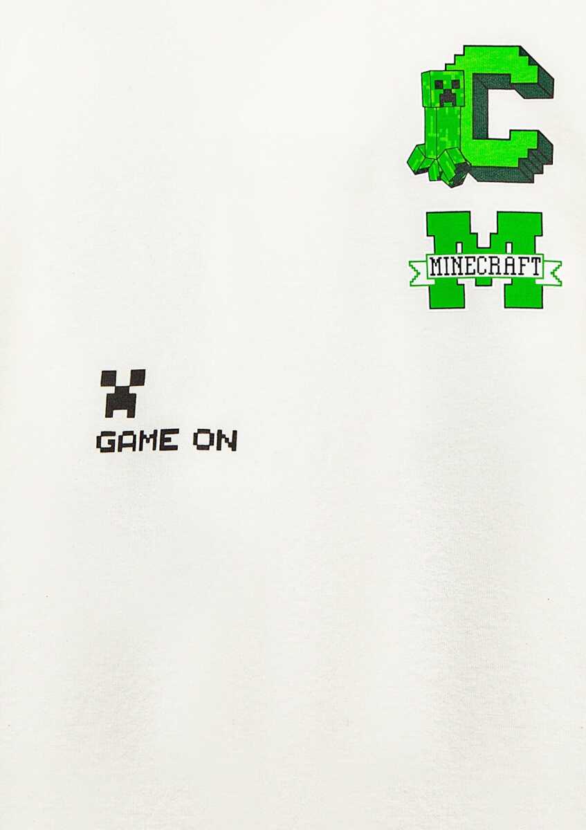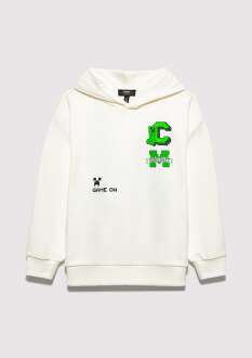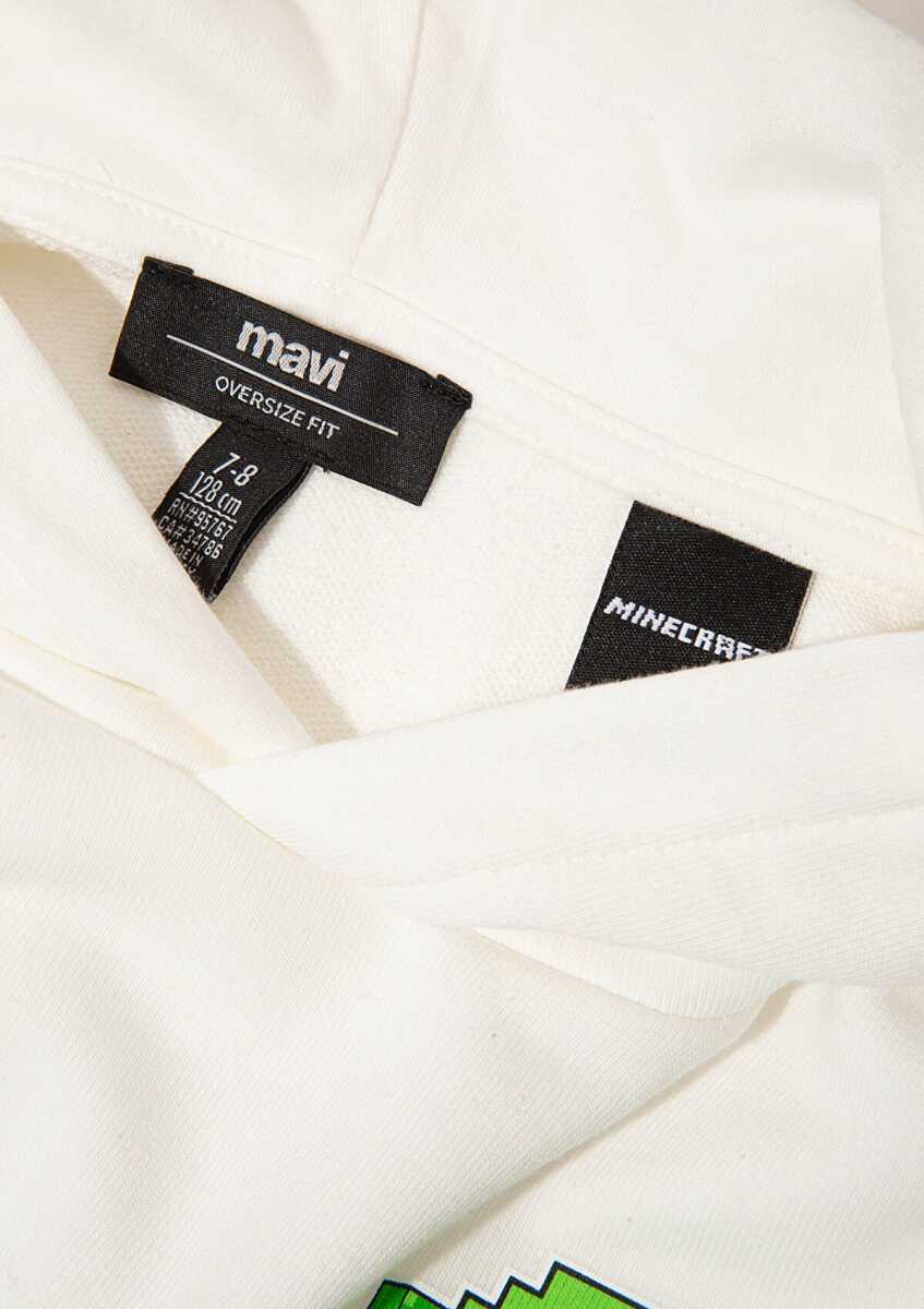 Mavi Minecraft Baskılı Kapüşonlu Ekru Oversıze Çocuk Sweat6S10176-70057