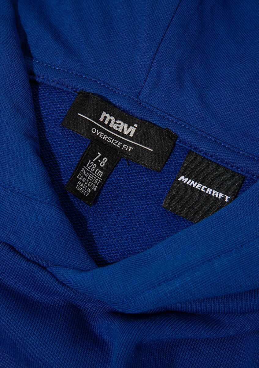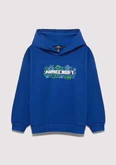 Mavi Minecraft Baskılı Kapüşonlu Mavi Oversıze Çocuk Sweat6S10180-70907