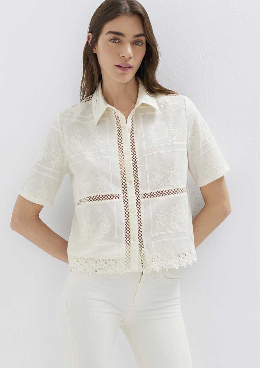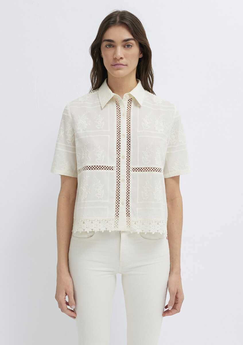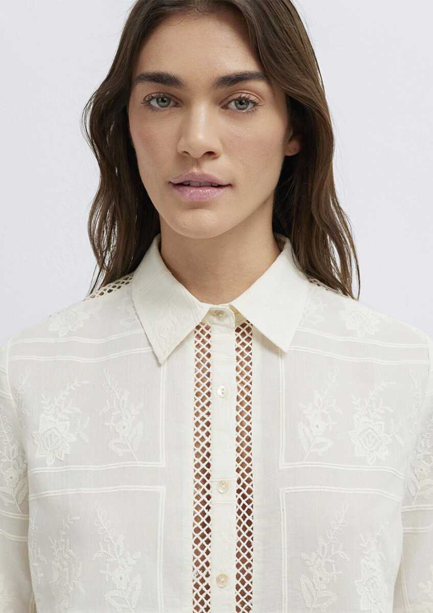 Şimdi KeşfetMavi Nakış Detaylı Ekru Regular Fit Kadın Gömlek 1211465-70060