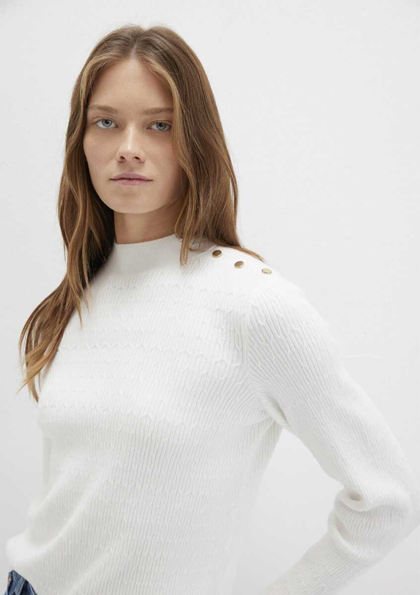 Mavi Omuz Detaylı Ekru Kadın Kazak 1710798-70057
