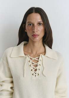 Mavi Polo Yaka Ekru Kadın Kazak 1710879-80194