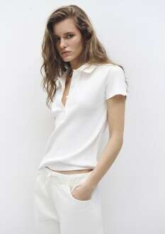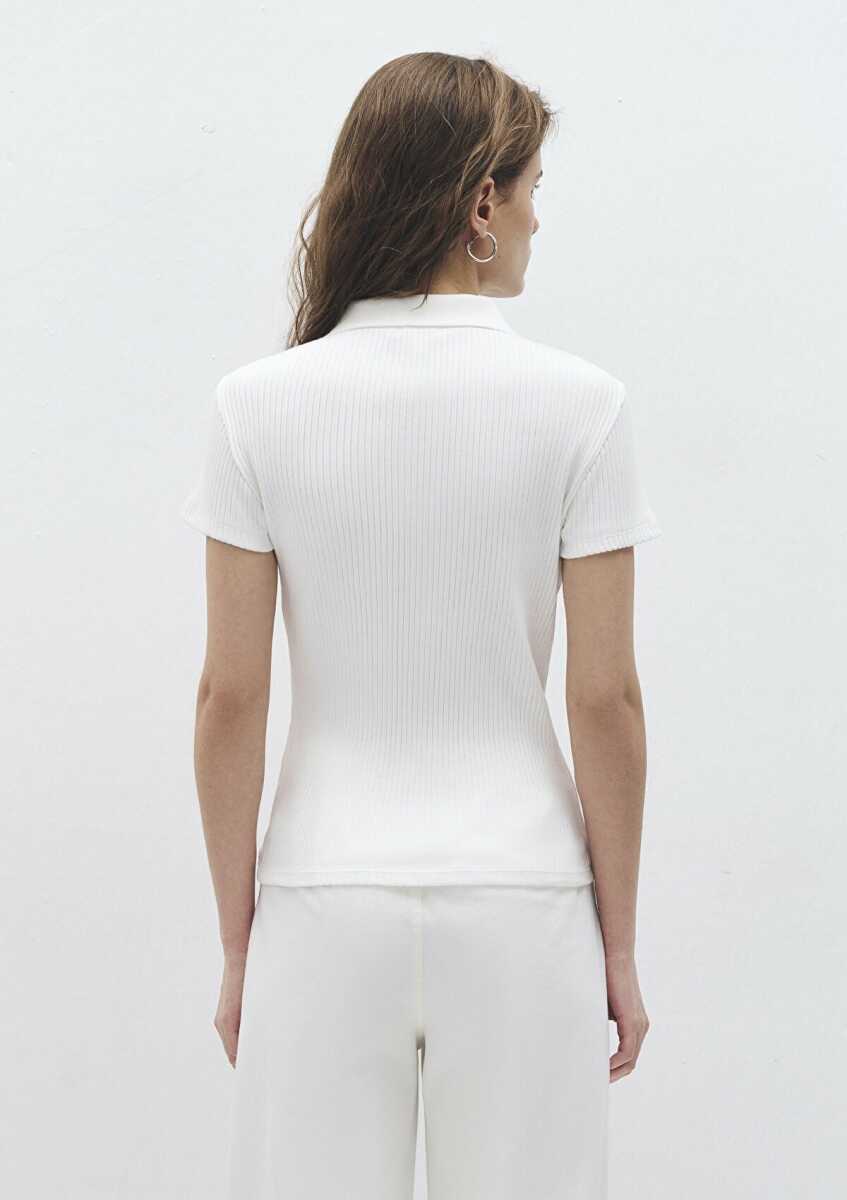 Mavi Polo Yaka Kırık Beyaz Kadın Tişört 1613120-70057