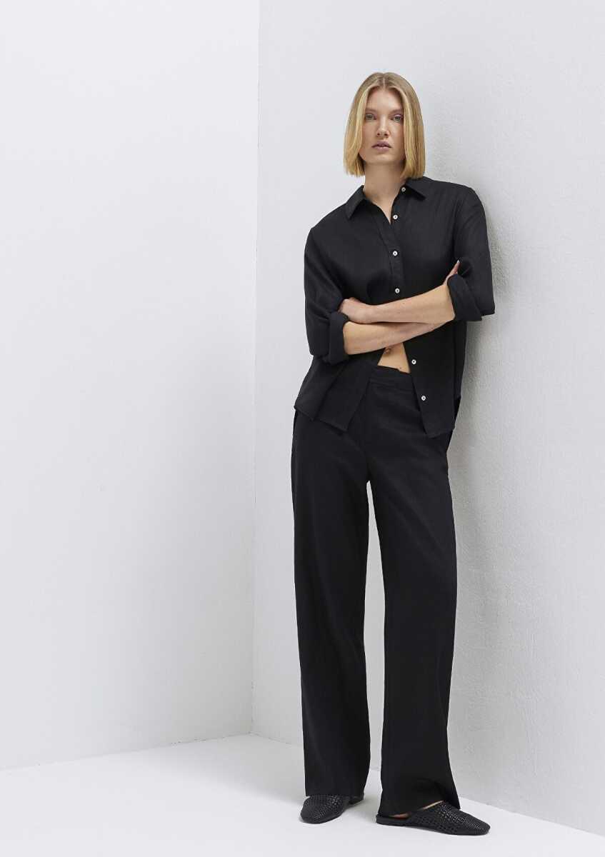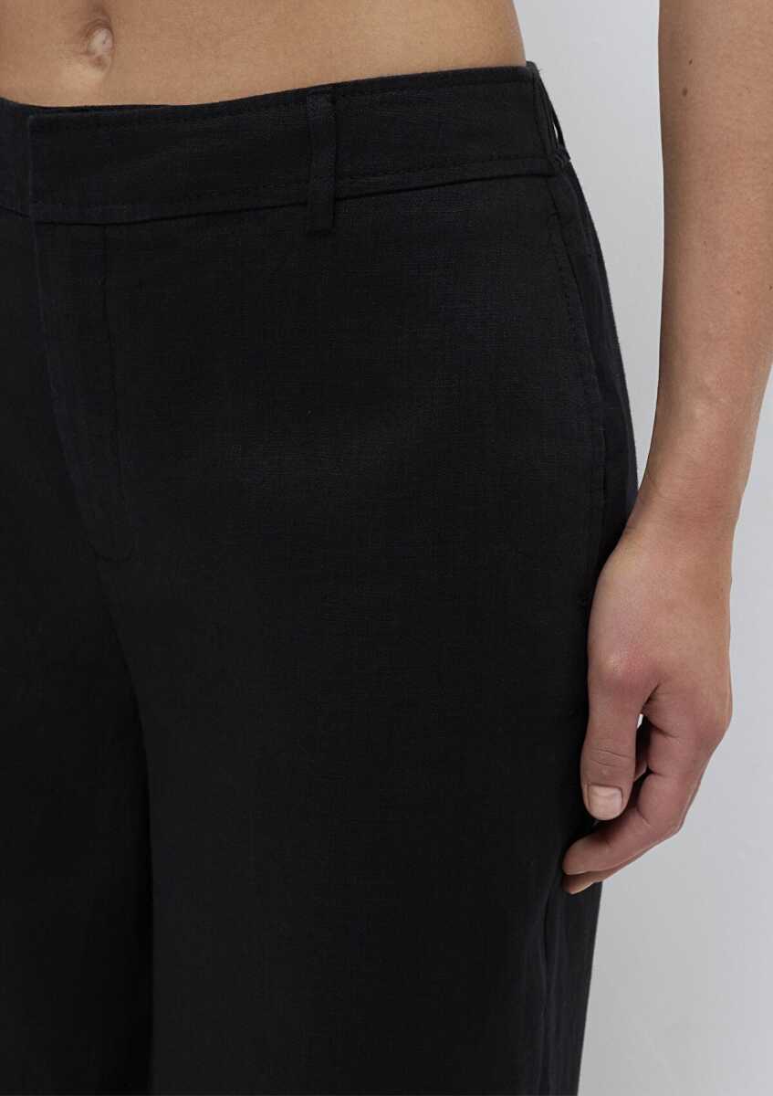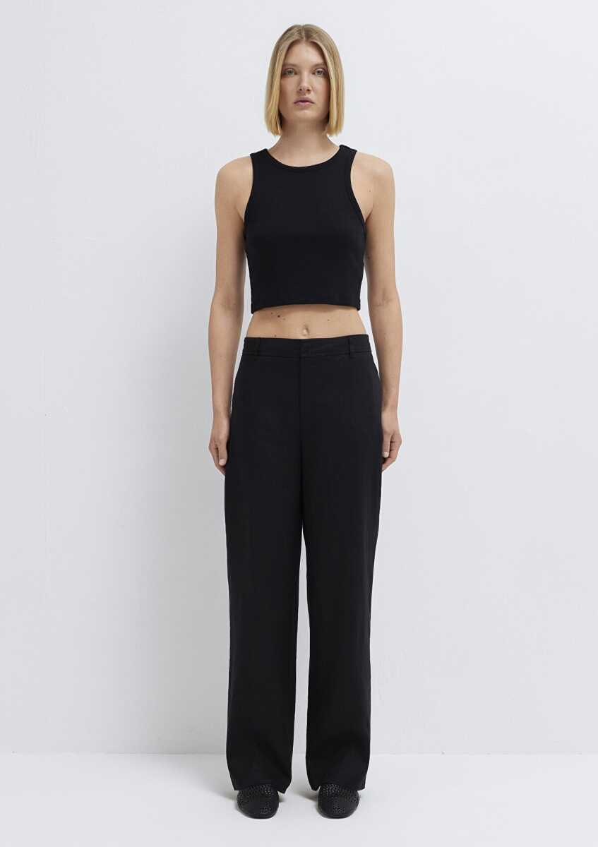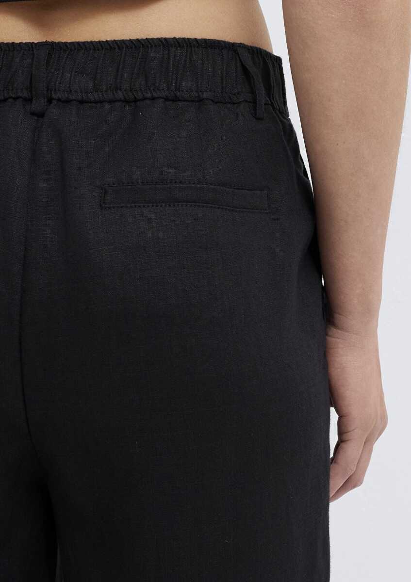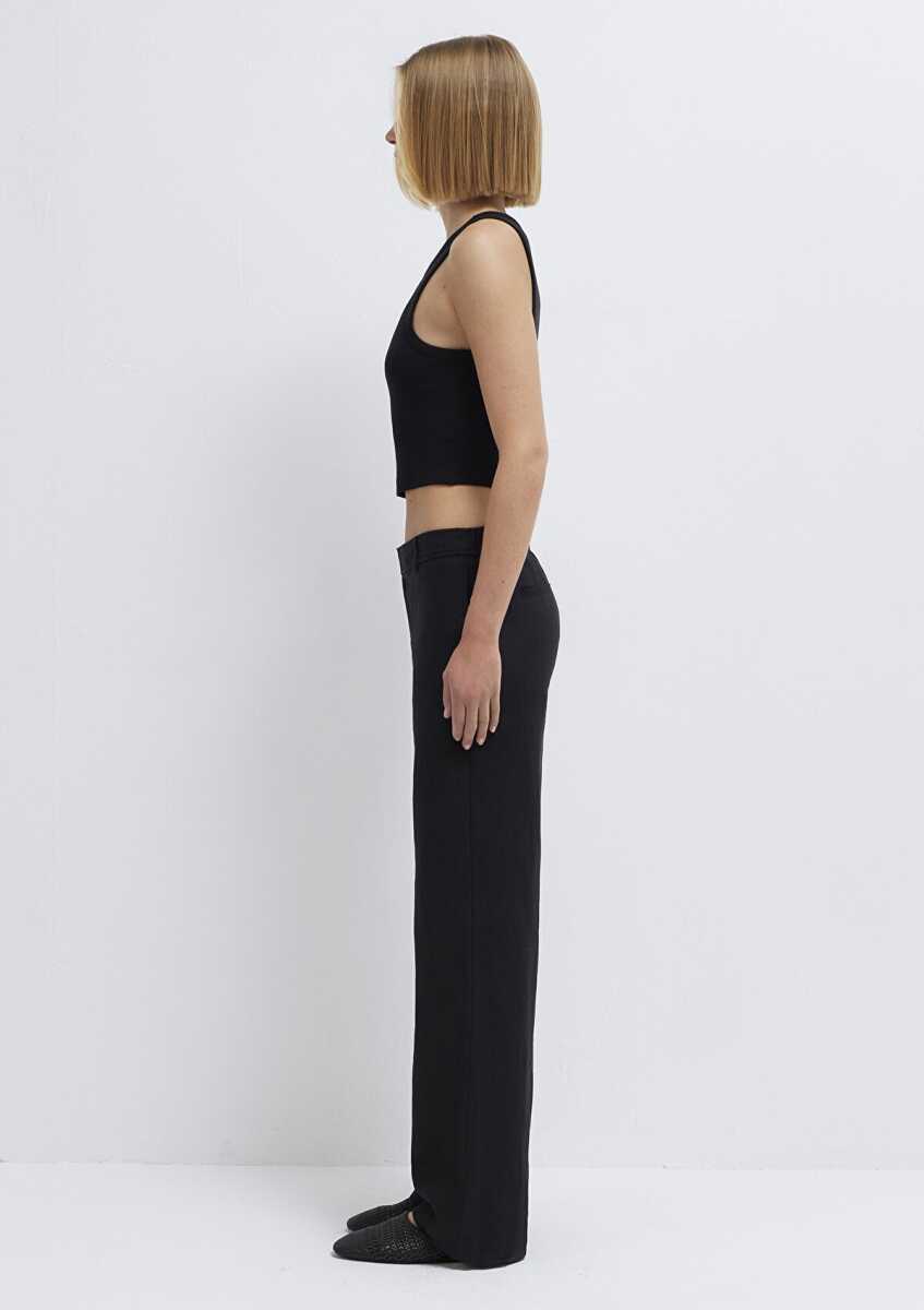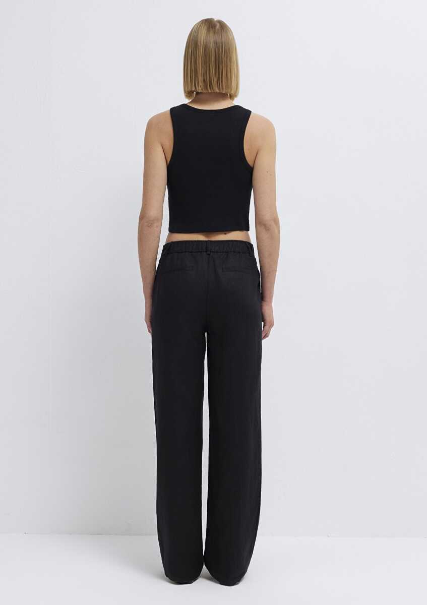 Mavi Siyah Geniş Paça Keten Kadın Pantolon 1011186-900
