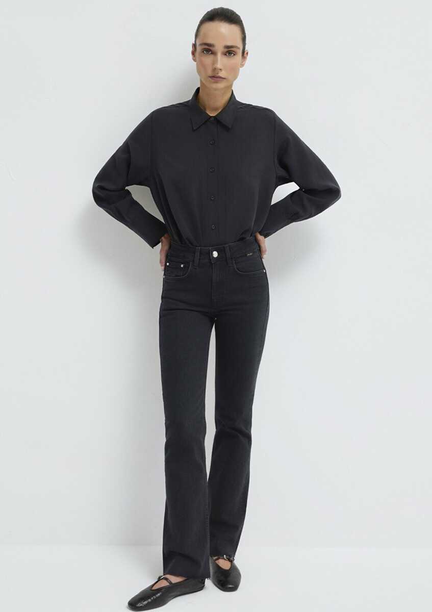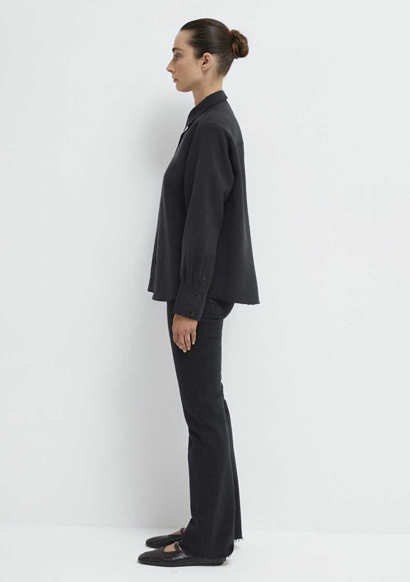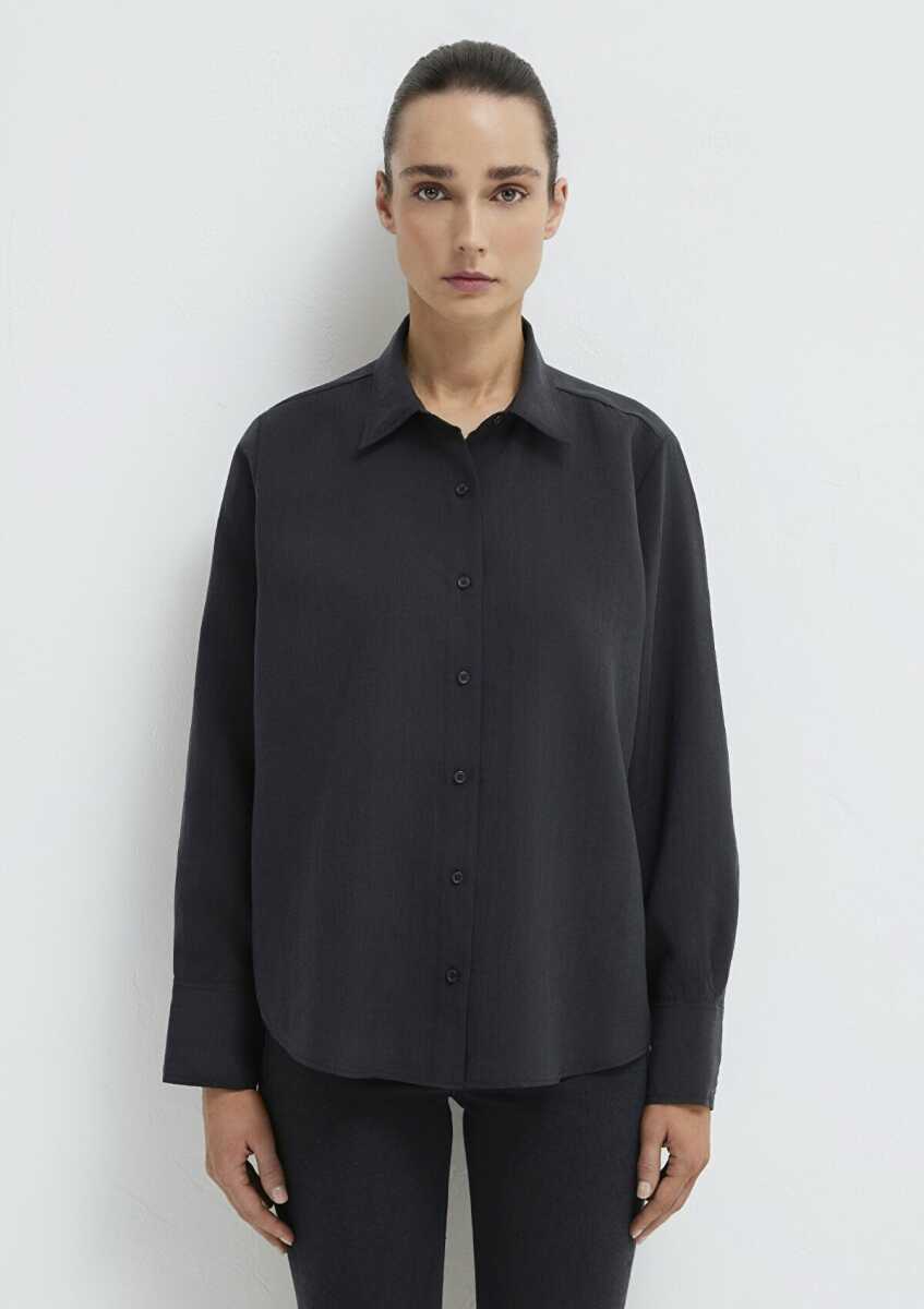 Mavi Siyah (TENCEL™) Liyosel Karışımlı Loose Fit Kadın Gömlek 1211373-900