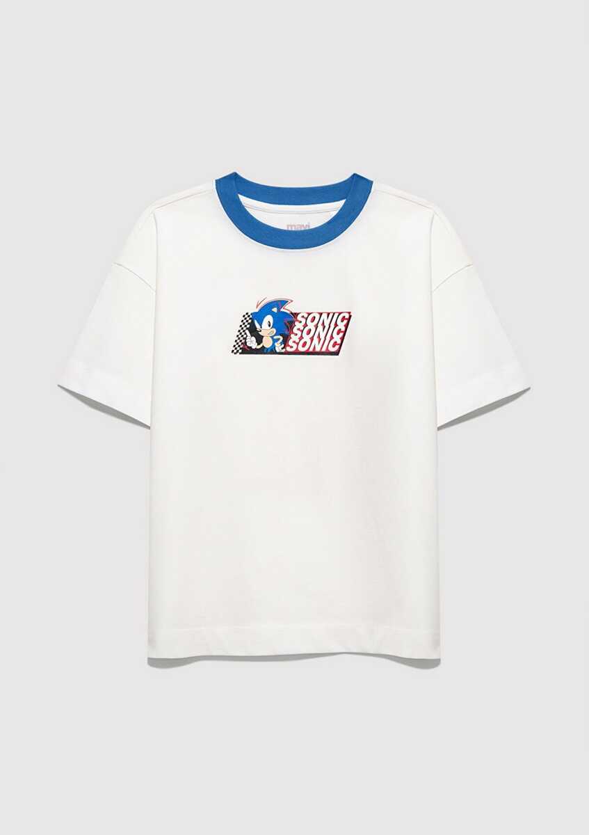 Mavi Sonic Baskılı Ekru Oversize Çocuk Tişört 6610432-70057