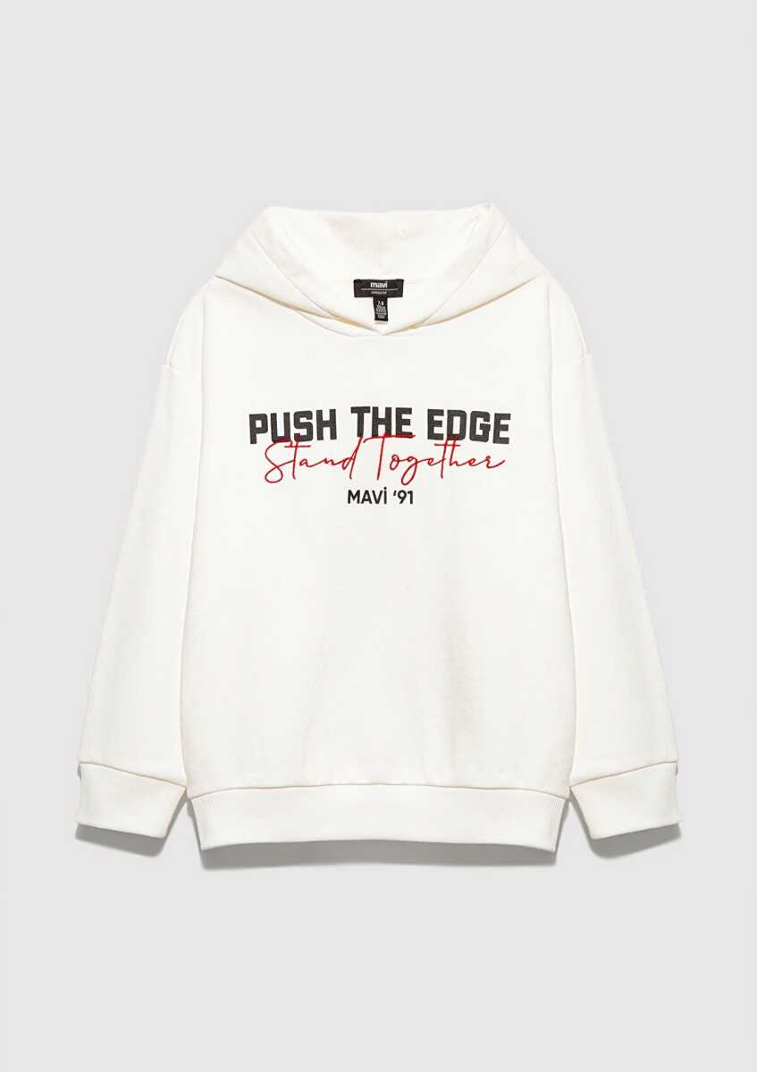 Mavi Stand Together Baskılı Kapüşonlu Ekru Çocuk Sweat 6S10181-70057