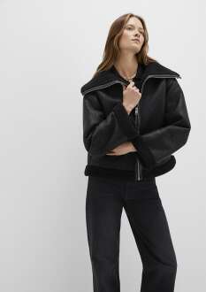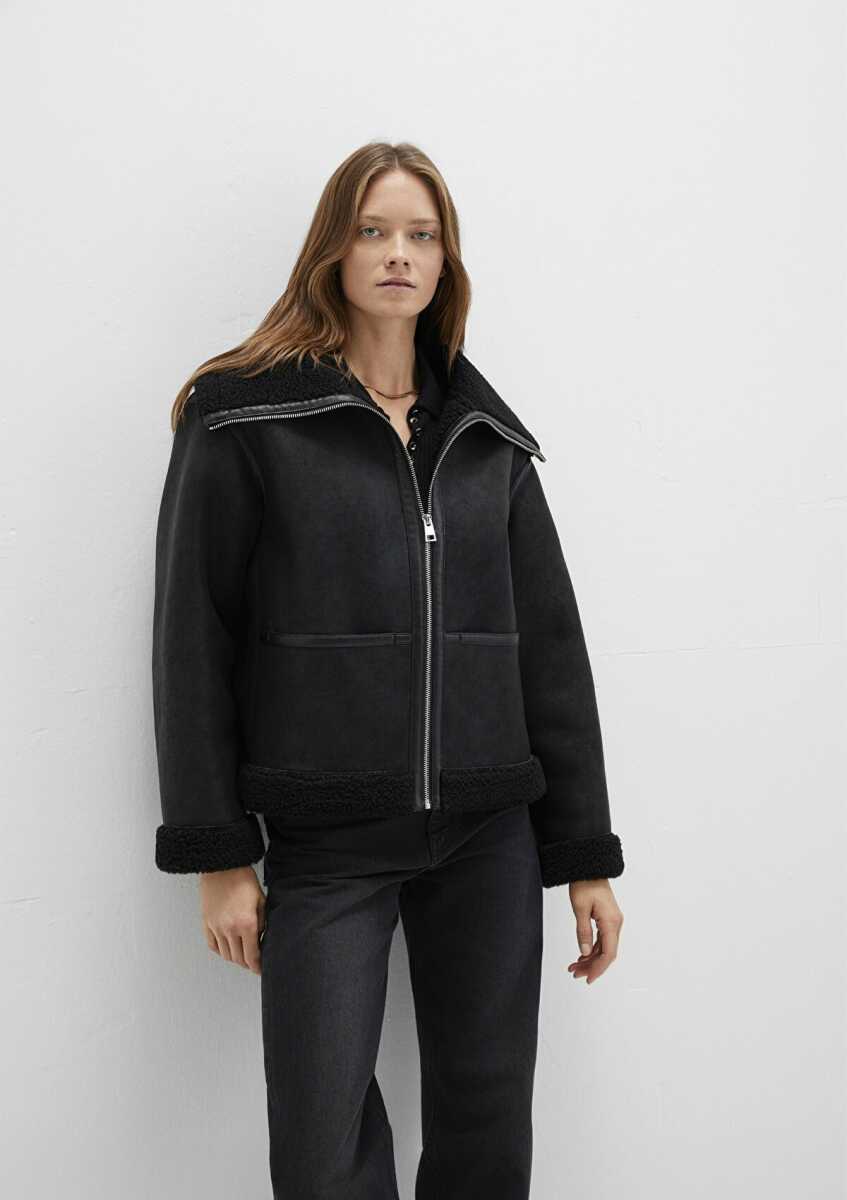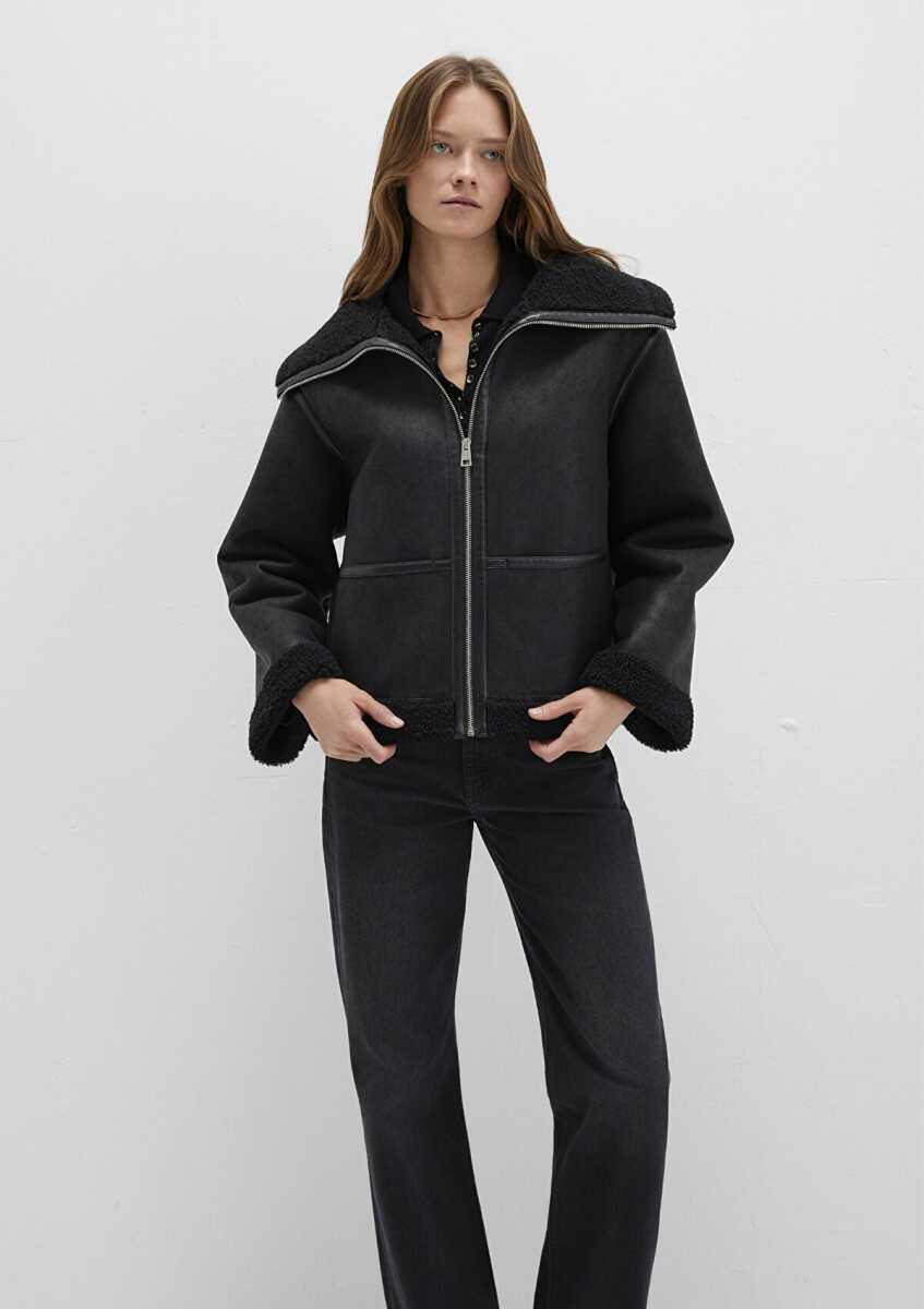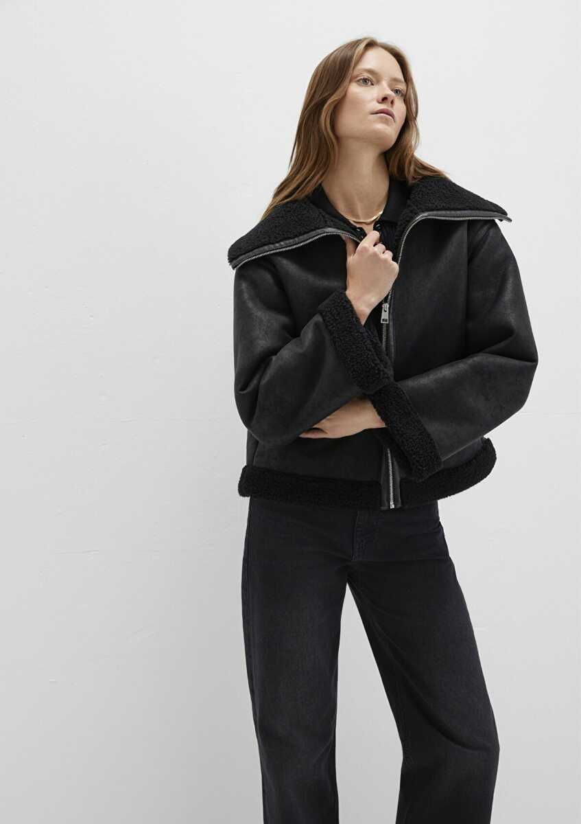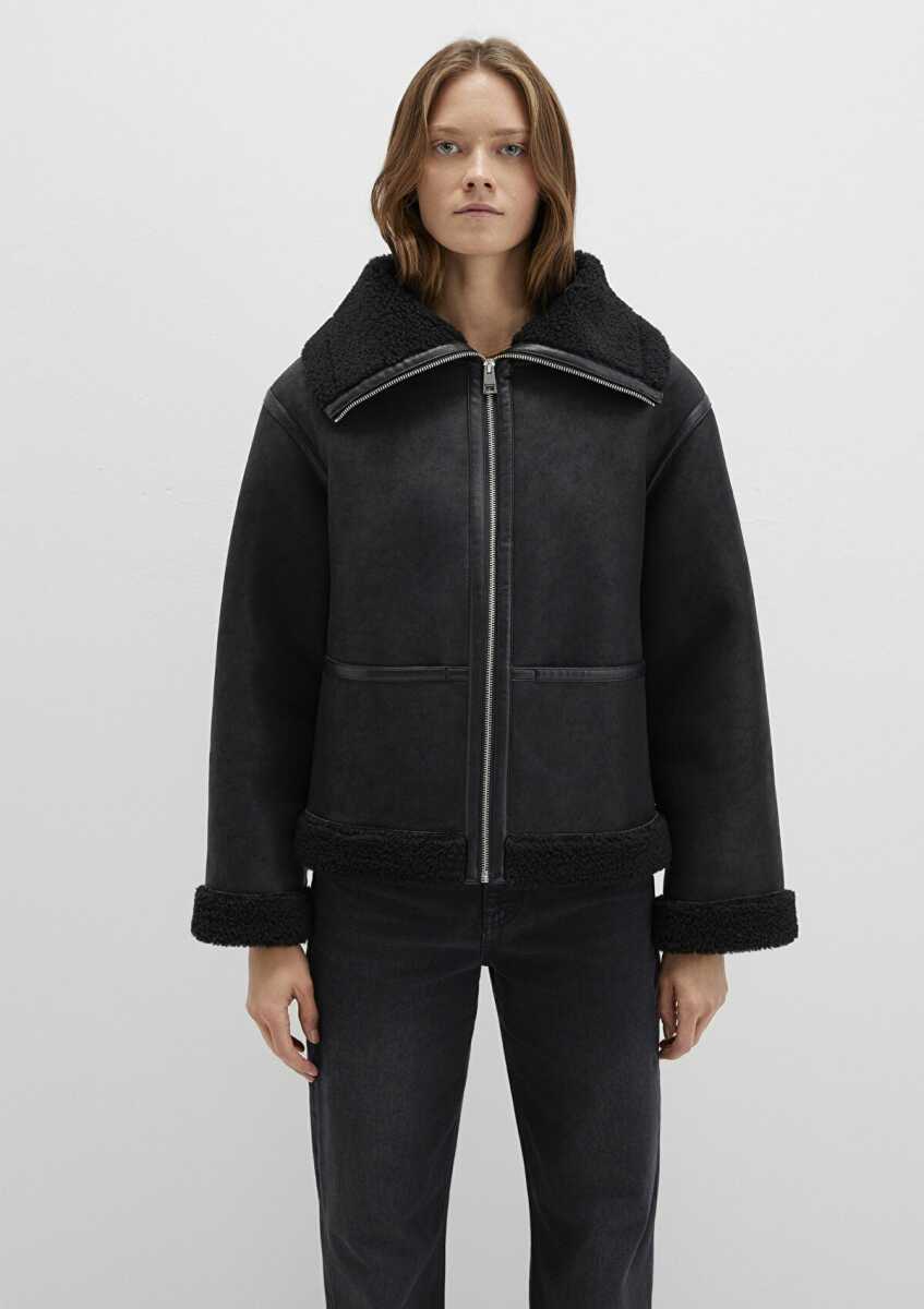 Mavi Suni Kürk Detaylı Siyah Suni Deri Kadın Ceket 1110718-900
