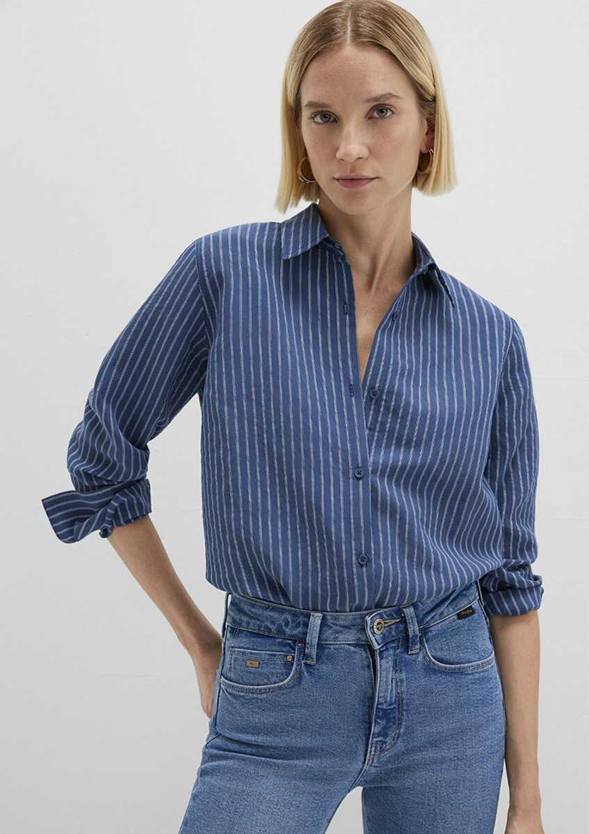 Mavi Mavi Uzun Kol Dokuma Kadın Gömlek 1211353-91345