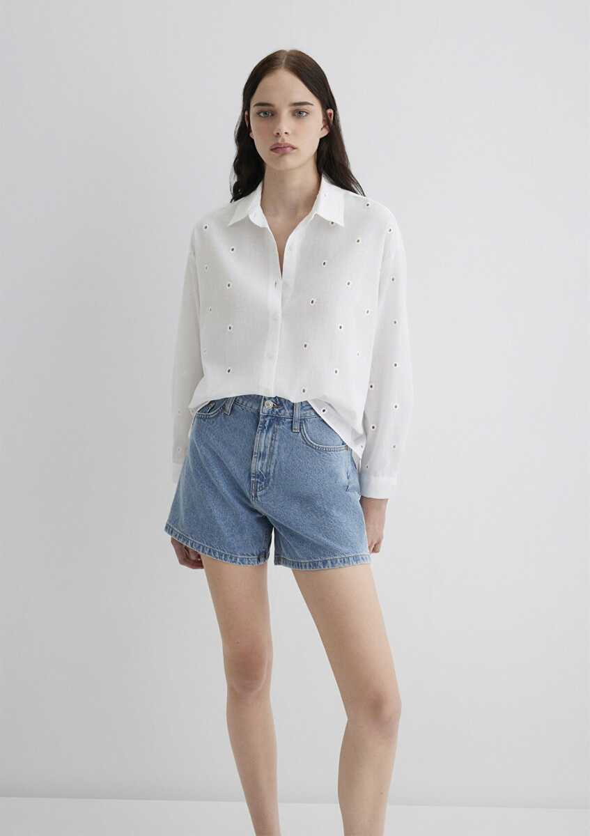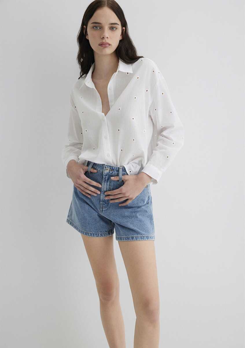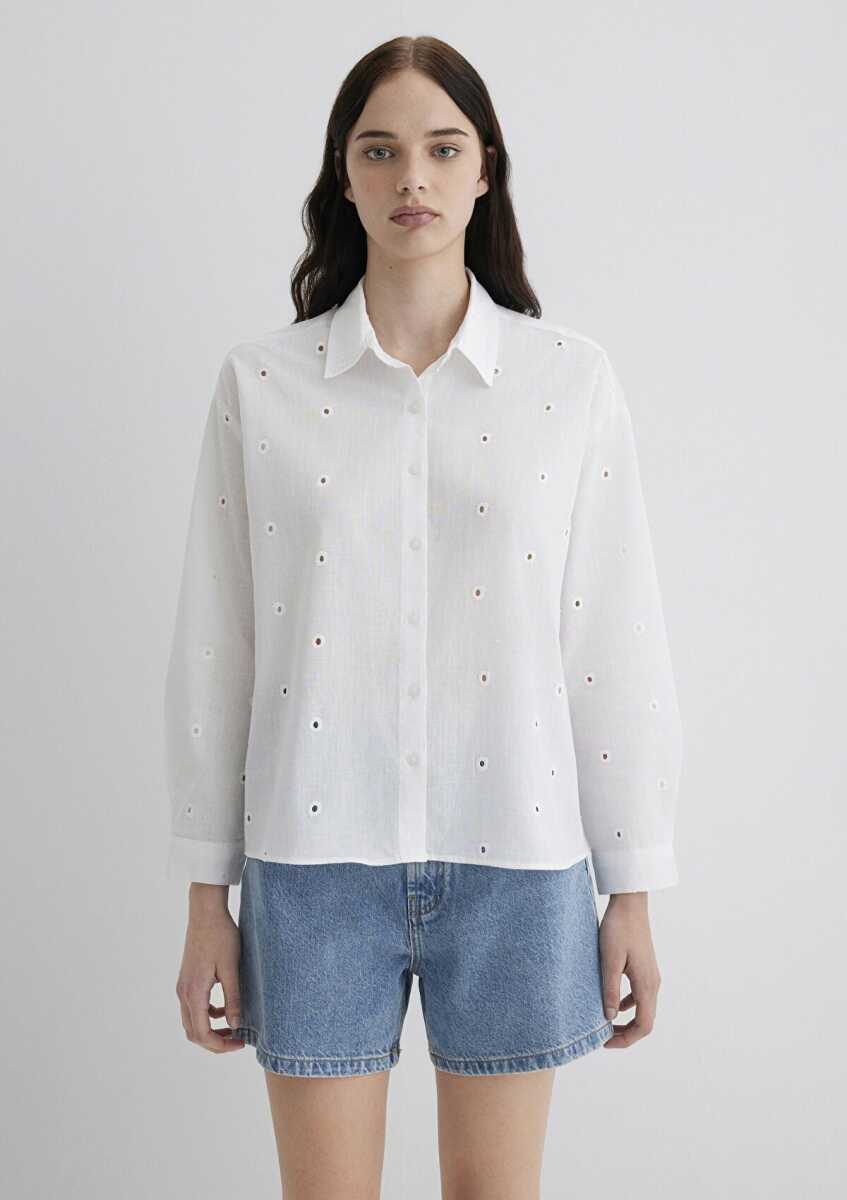 Mavi Mavi Uzun Kol Dokuma Kadın Gömlek 1211353-91345