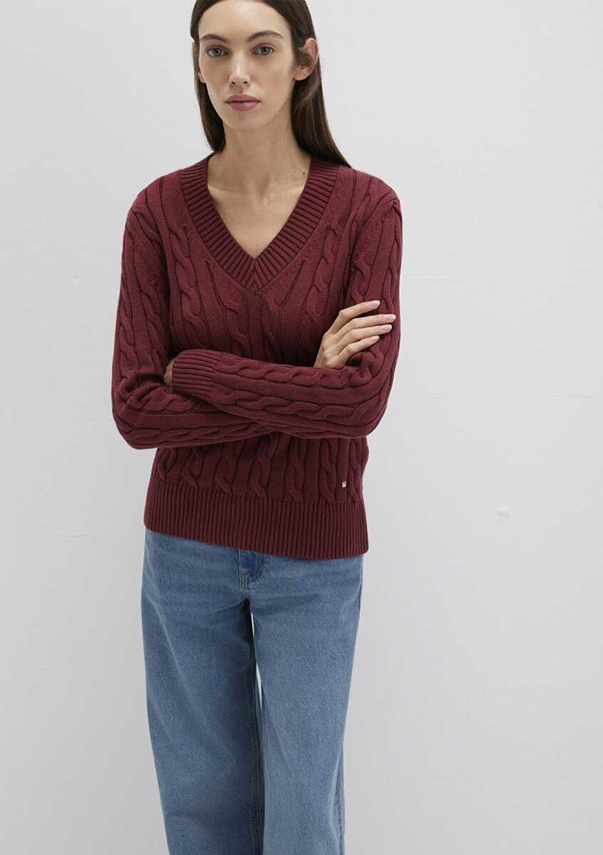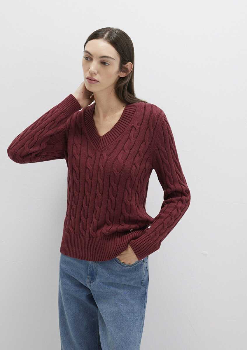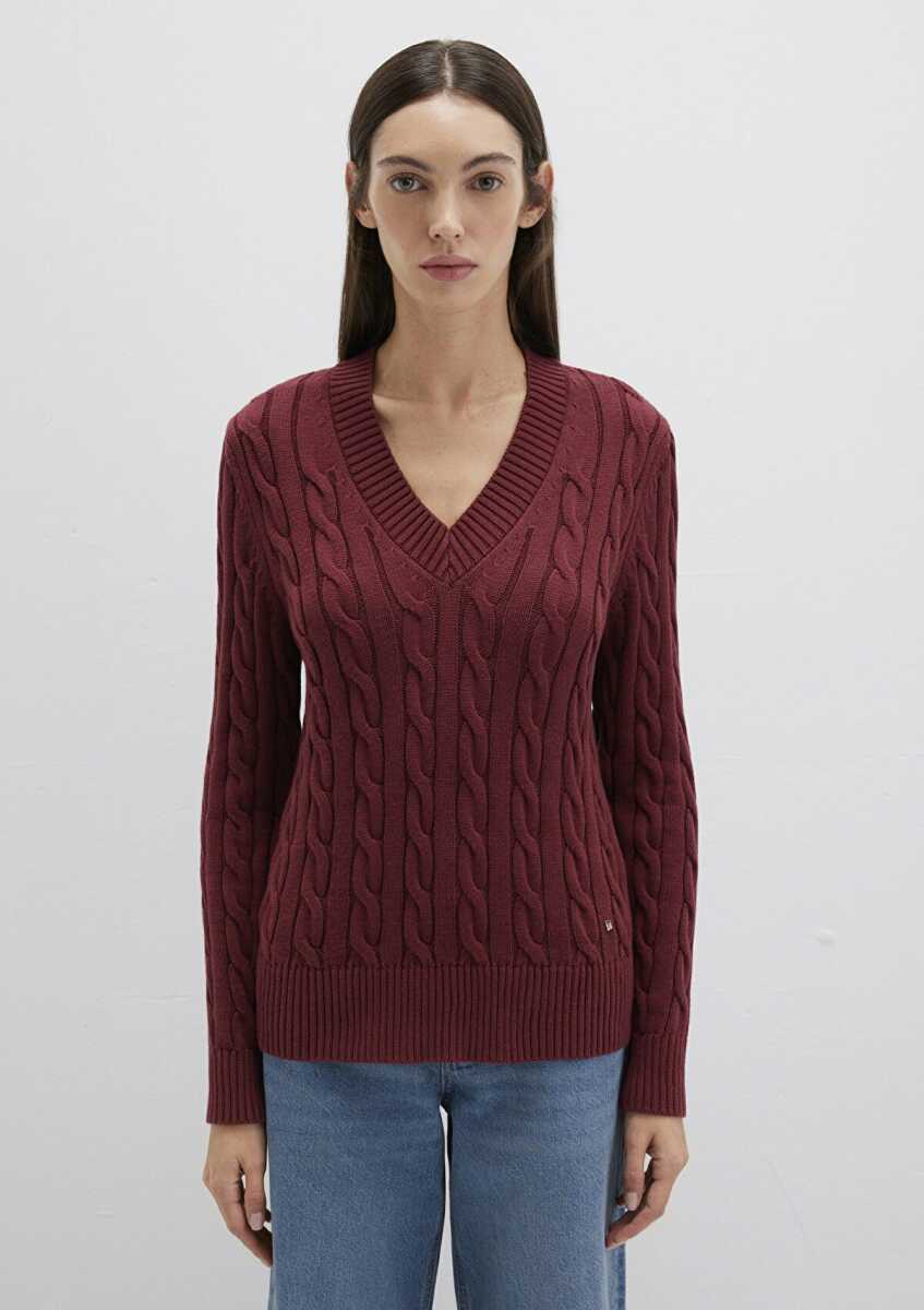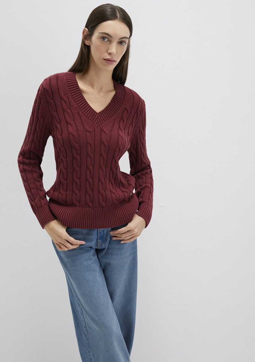 Mavi V Yaka Bordo Kadın Kazak 1710720-85493