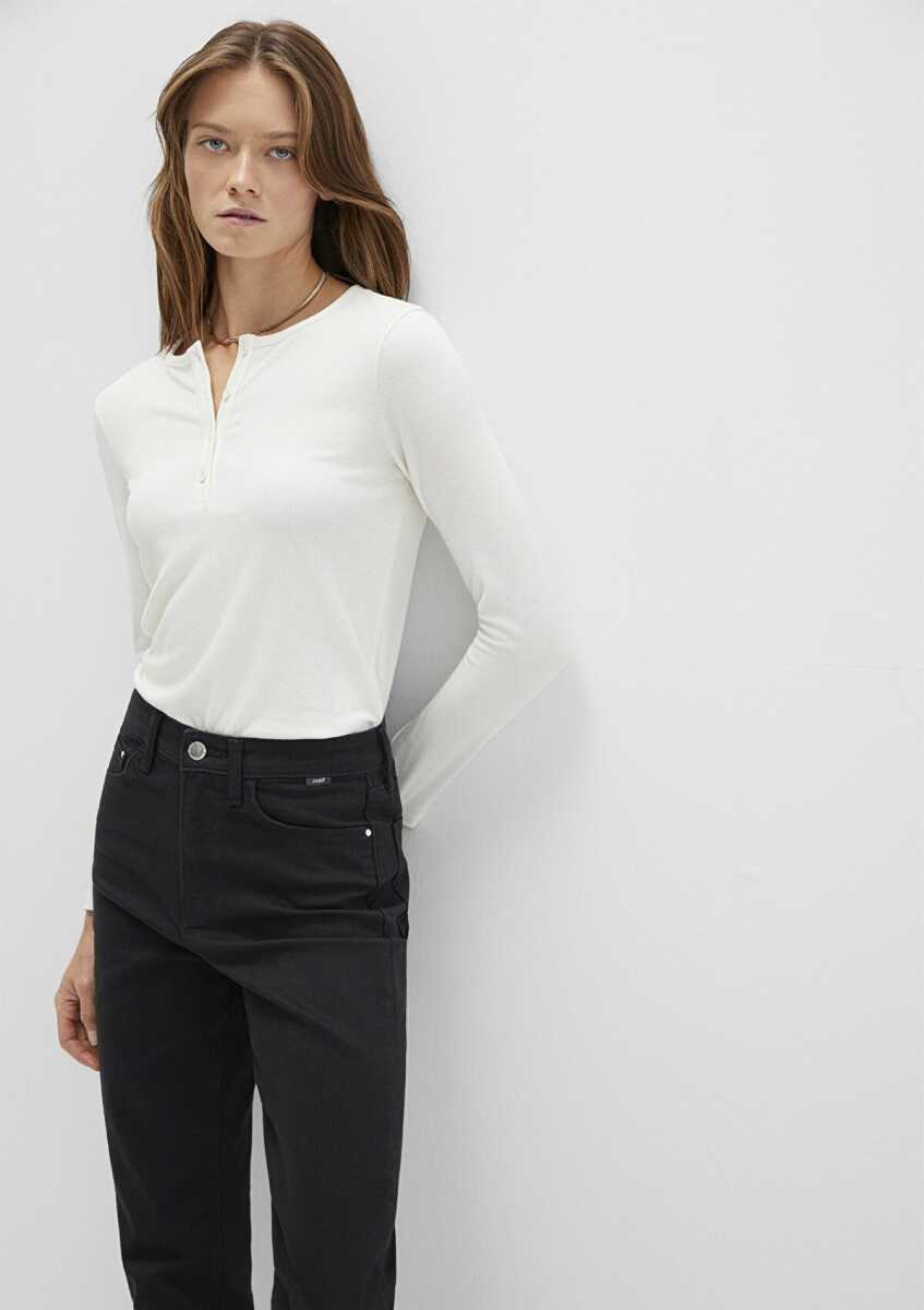 Mavi Yarım Düğmeli Basic Kadın Sweat 1613621-80194