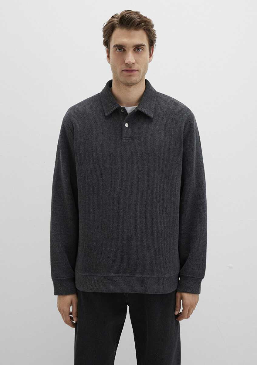Mavi Yarım Düğmeli Polo Yaka Erkek Sweat 0S10476-80023