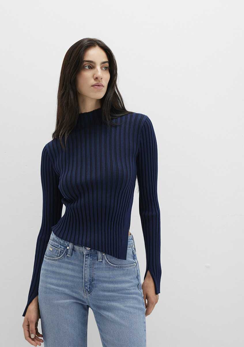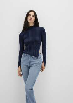 Mavi Yırtmaç Detaylı Lacivert Kadın Kazak 1710789-70497