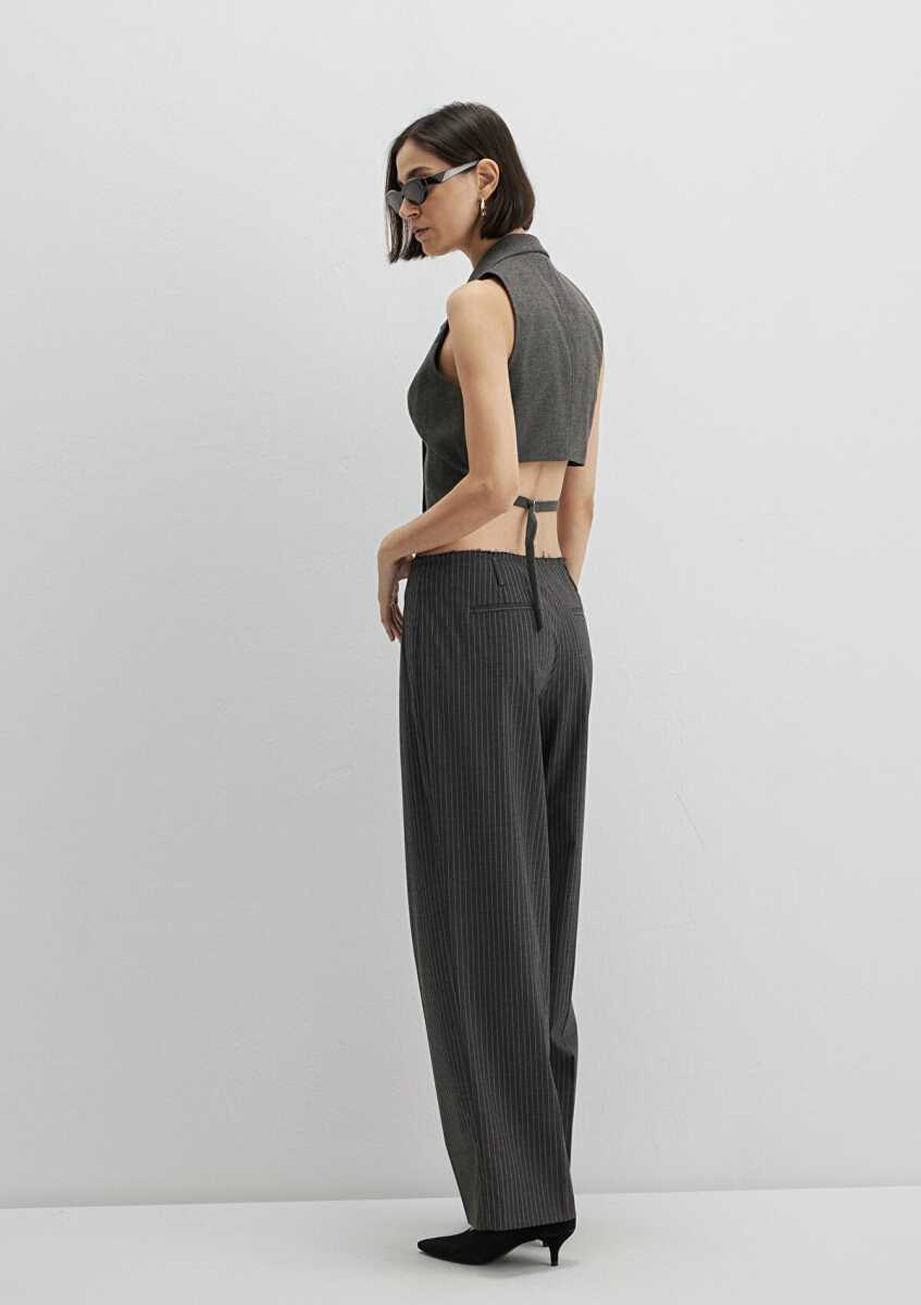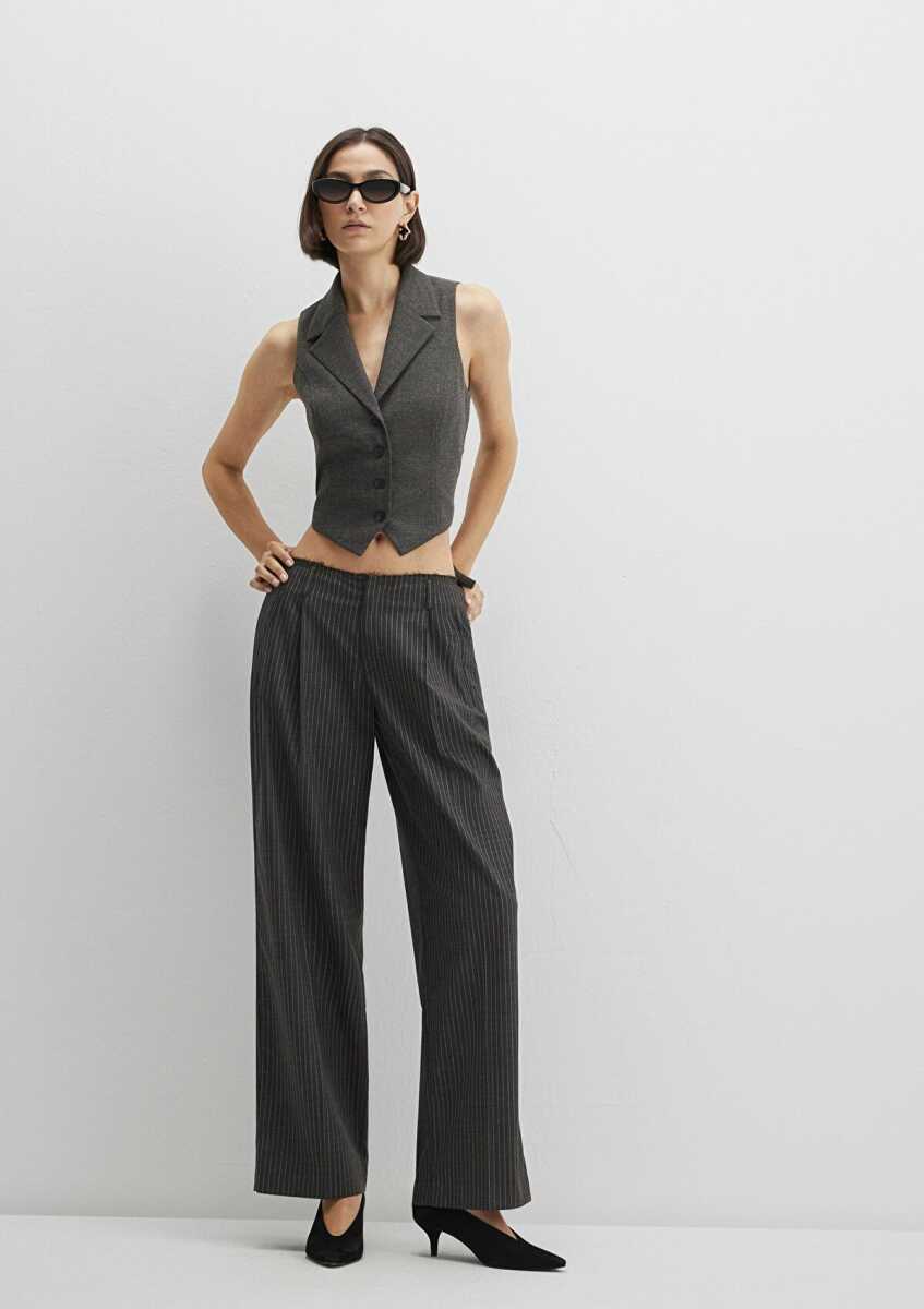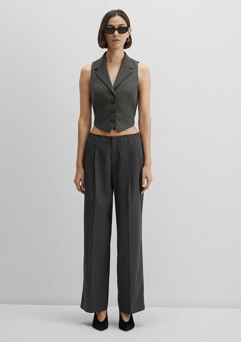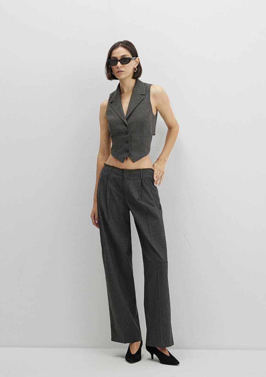 Mavi Yün Karışımlı Antrasit Çizgili Kadın Pantolon 1011129-89329