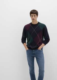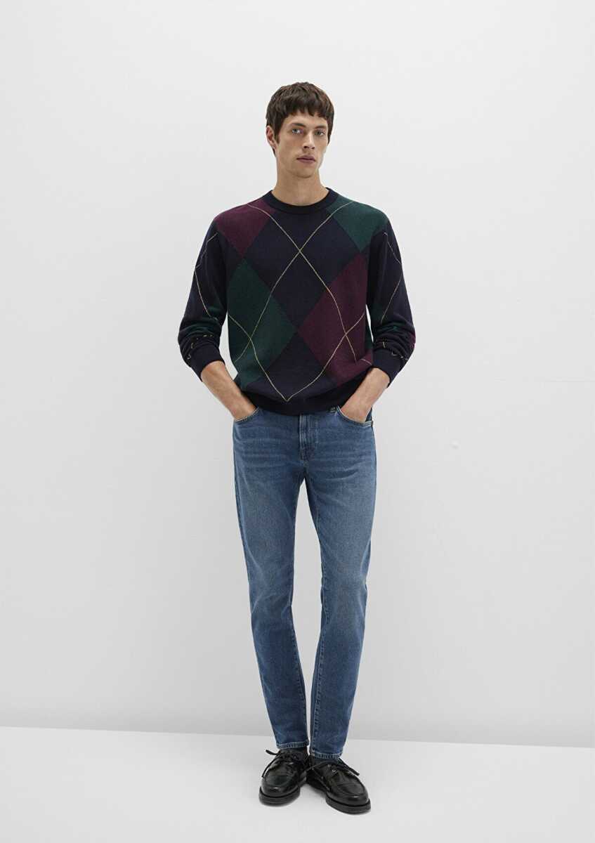 Mavi Yün Karışımlı Baklava Desenli Lacivert Erkek Kazak 0710334-70497