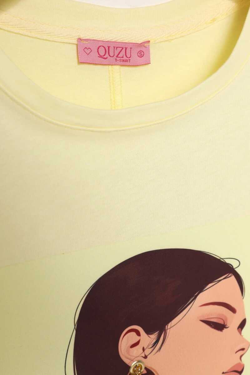 Quzu Bisiklet Yaka Önü Detaylı Kadın T-shirt 25YTSH00597