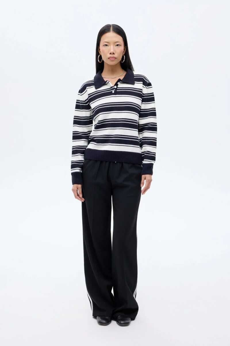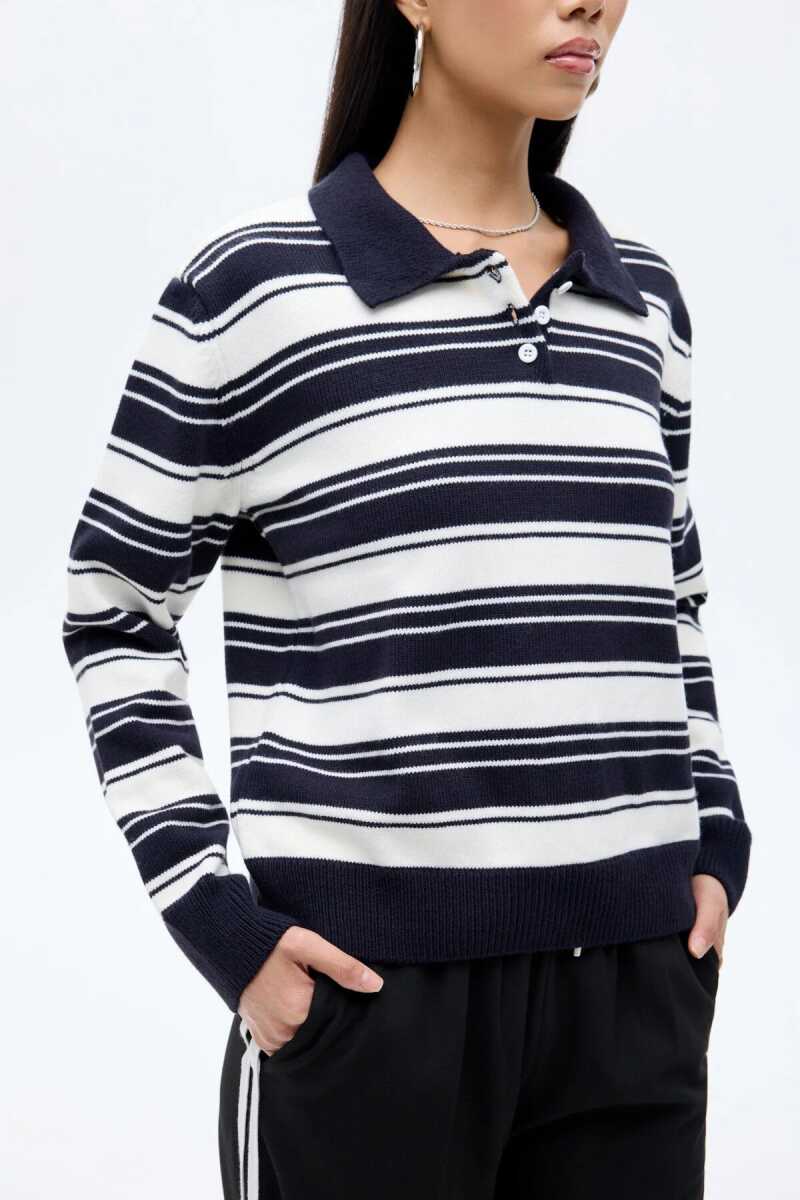Çizgili tasarımlı polo yaka düğmeli uzun kollu manşet ve etek ucu ribanalı regular fit triko.Kumaş BilgisiAkrilik %80 Polyester %20ÜrünManken ÖlçüleriÜrün Boy Ölçüsü: 56 cm Manken Ölçüleri: Boy:1.75 Göğüs:78 Bel:60 Basen:90 Beden:SYıkama TalimatlarıElde Yıkayabilirsiniz Asarak Kurutunuz