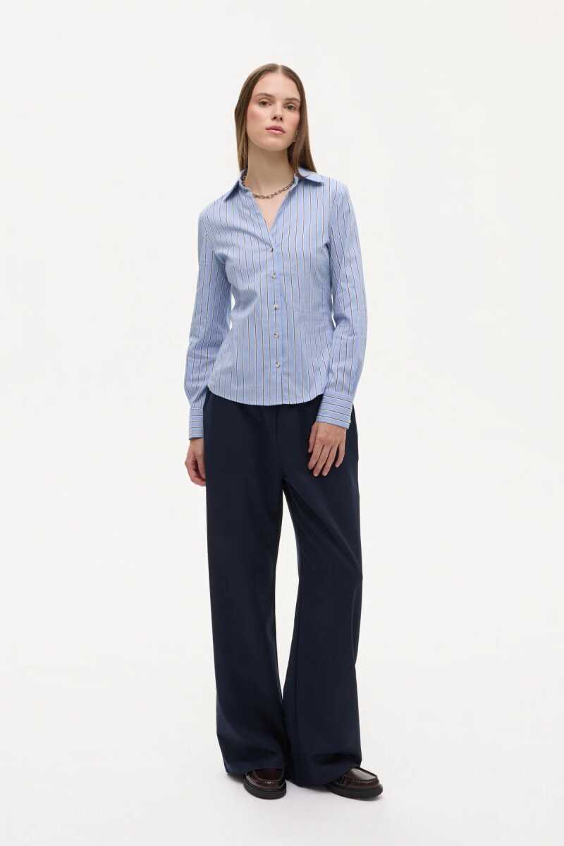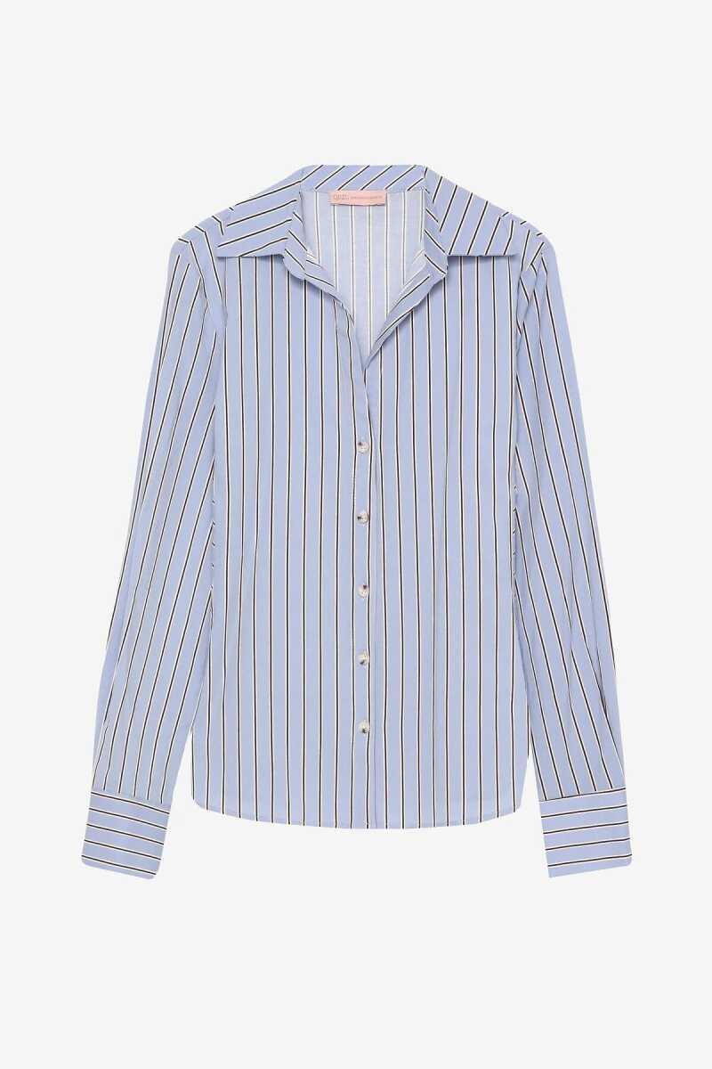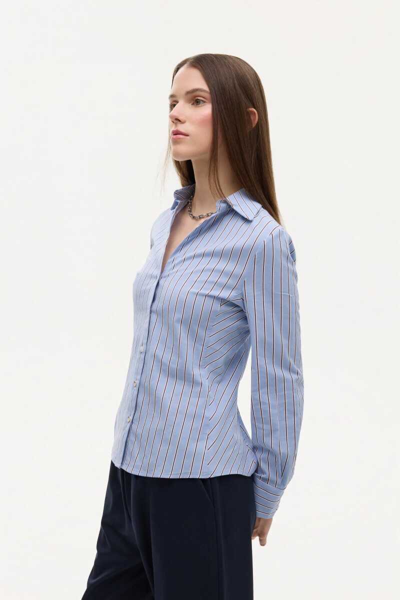 Quzu Çizgili Vücuda Oturan Kadın Gömlek