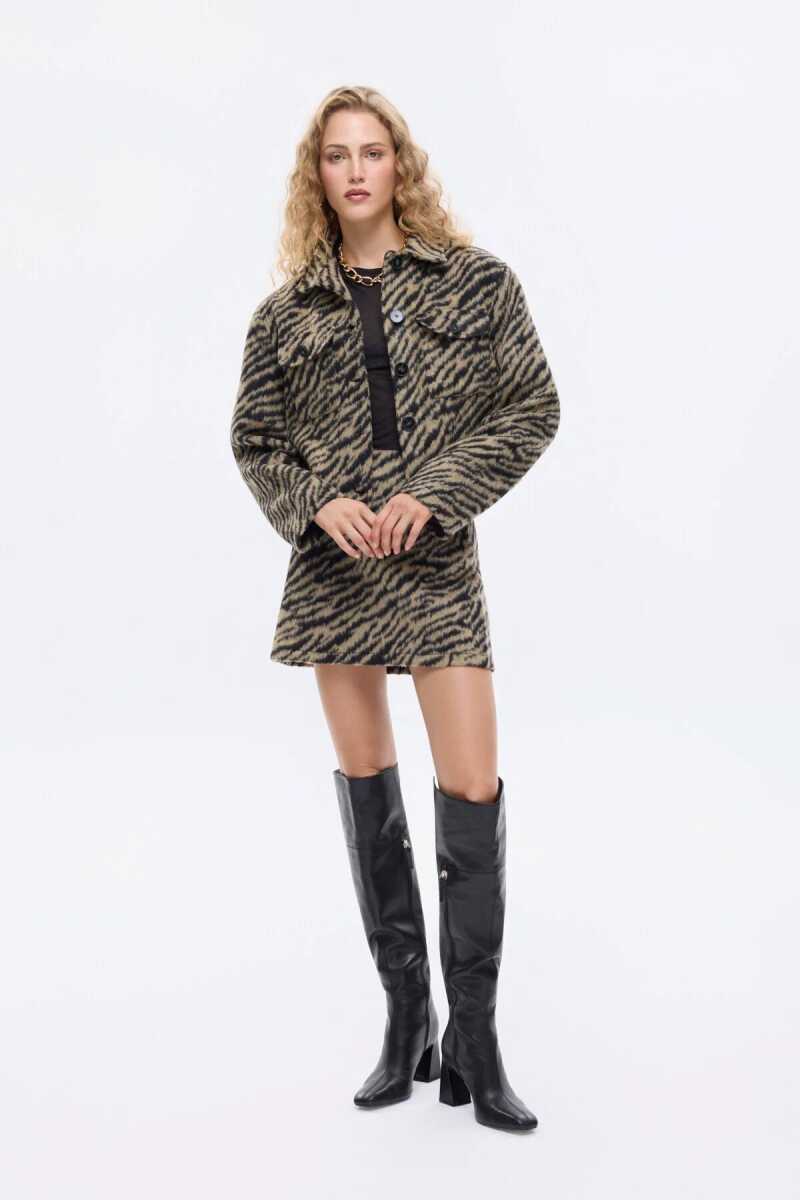 Kısa boy kaplan desenli içi astarlı önü düğme kapamalı cep düğme kapaklı uzun kollu yumuşak dokulu kaşe ceket.Kumaş BilgisiAkrilik %50 Pamuklu %30 Polyester %20ÜrünManken ÖlçüleriÜrün Boy Ölçüsü: 53 cm Göğüs: 54 cm Manken Ölçüleri: Boy:1.78 Göğüs:81 Bel:63 Basen:90 Beden:SYıkama TalimatlarıMakinede 30° Yıkayabilirsiniz Gerektiğinde Klorsuz Çamaşır Suyu Konabilir Kurutma Makinesinde Normal Düşük Isıda Düşük Isıda Ütüleyiniz Kuru Temizleme Az Çözücü