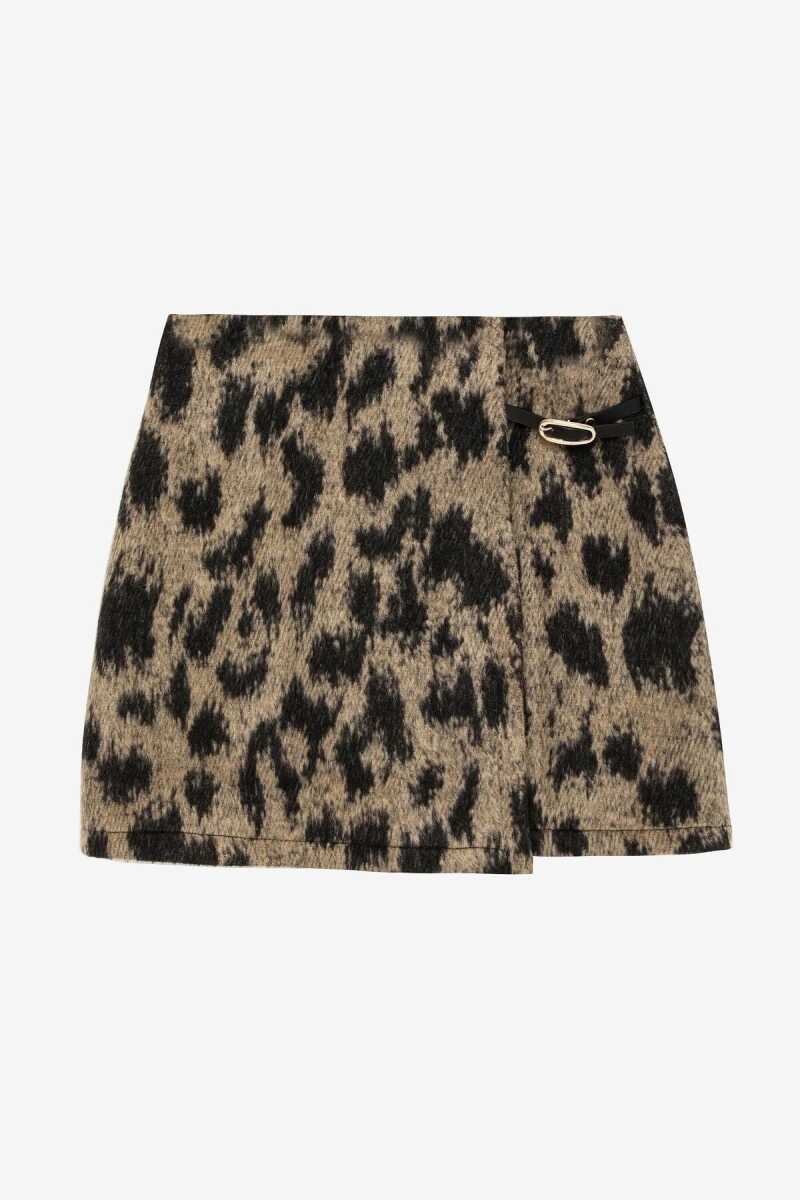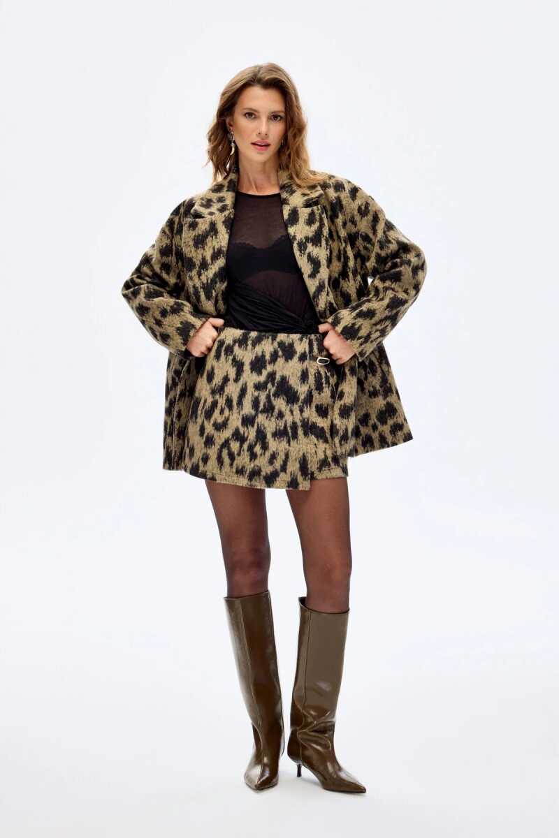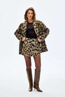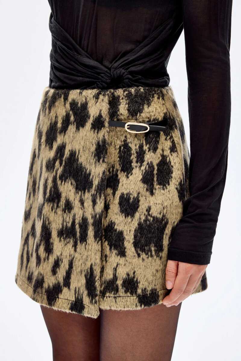 İçi astarsız yan kısmında tokalı kemer detaylı düz kesim leopar desenli yandan fermuar kapamalı kapak detaylı mini boy etek.Kumaş BilgisiAkrilik %50 Pamuklu %30 Polyester %20