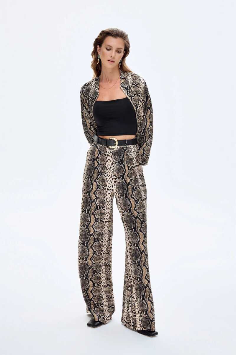 Yılan deseni baskılı yüksek bel bol paça yan cepli fermuarlı ve kanca kapamalı gold kemer aksusarlı uzun bol paça pantolon.Kumaş BilgisiViskon %100Yıkama TalimatlarıMakinede 30° Yıkayabilirsiniz Gerektiğinde Klorsuz Çamaşır Suyu Konabilir Kurutma Makinesinde Normal Düşük Isıda Düşük Isıda Ütüleyiniz Kuru Temizleme Az Çözücü