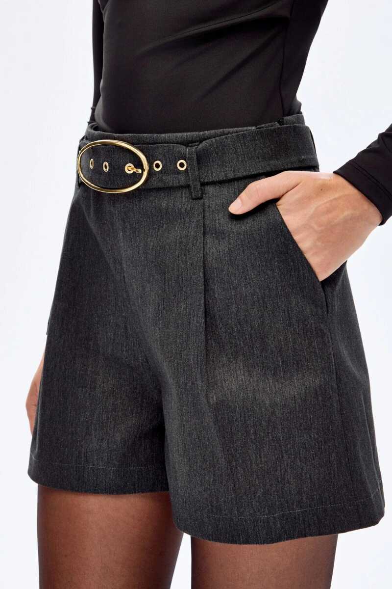 Yüksek bel yan cepli fermuar ve kanca kapamalı tokalı kemer aksesuarlı düz paça pileli mini boy şort.Kumaş BilgisiElastan %4 Polyester %96Yıkama TalimatlarıMakinede 30° Yıkayabilirsiniz Gerektiğinde Klorsuz Çamaşır Suyu Konabilir Kurutma Makinesinde Normal Düşük Isıda Düşük Isıda Ütüleyiniz Kuru Temizleme Az Çözücü