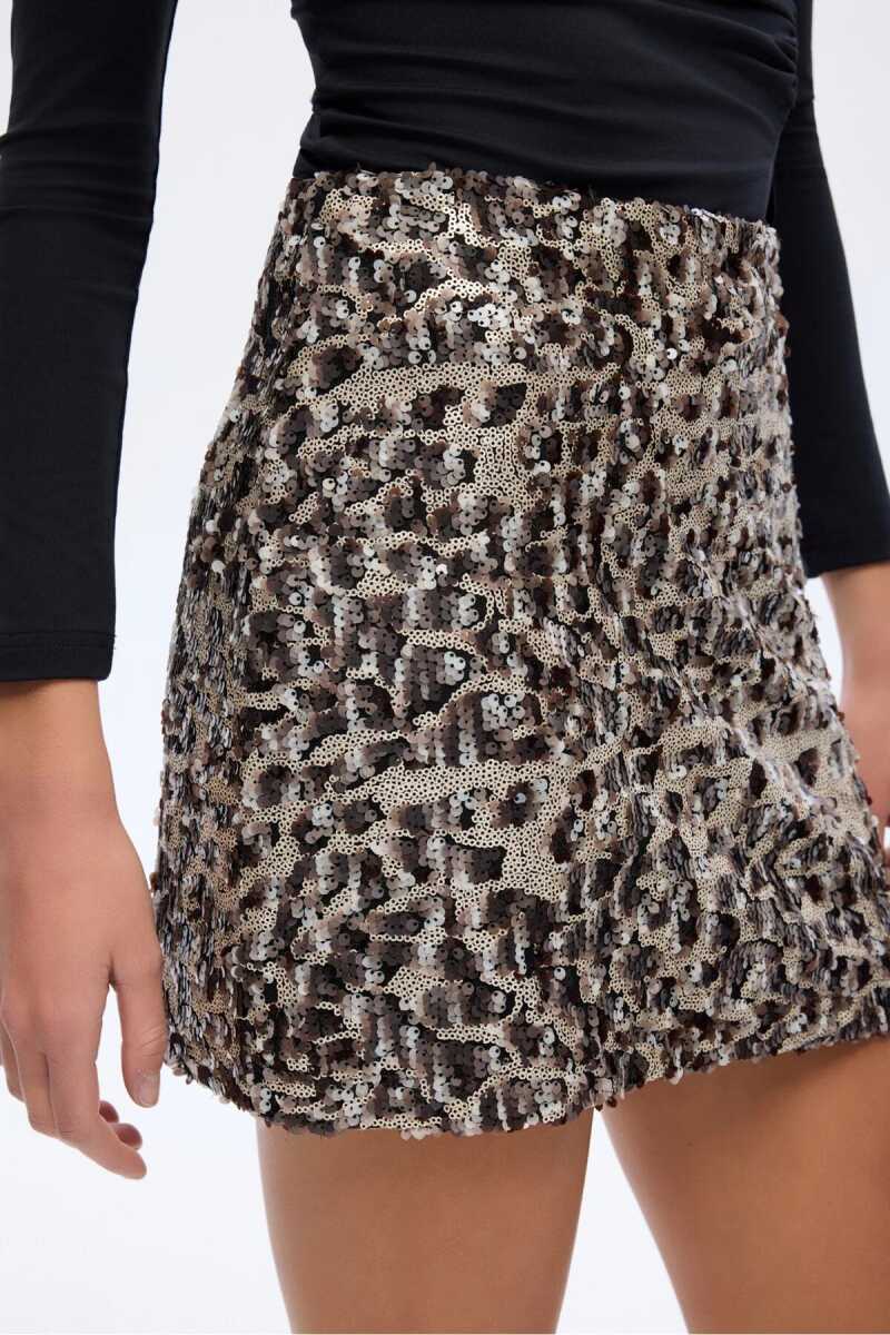 İçi astarlı parlak leopar desenli payet işlemeli düz kesim yandan fermuar kapamalı yüksek bel mini etek.Kumaş BilgisiPolyester %100ÜrünManken ÖlçüleriÜrün Boy Ölçüsü: 40 cm Bel: 33 cm Basen: 45 cm Manken Ölçüleri: Boy:1.75 Göğüs:78 Bel:62 Basen:88 Beden:SYıkama TalimatlarıMakinede 30° Yıkayabilirsiniz Gerektiğinde Klorsuz Çamaşır Suyu Konabilir Kurutma Makinesinde Normal Düşük Isıda Düşük Isıda Ütüleyiniz Kuru Temizleme Az Çözücü