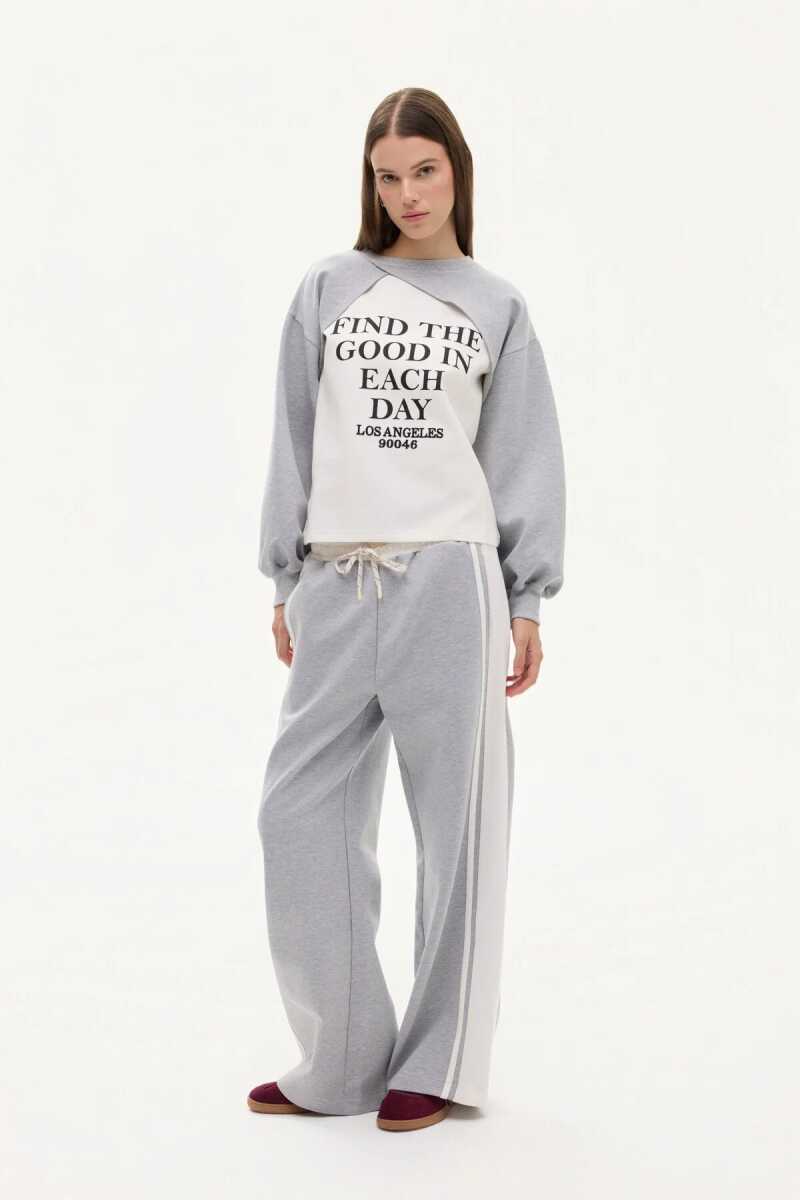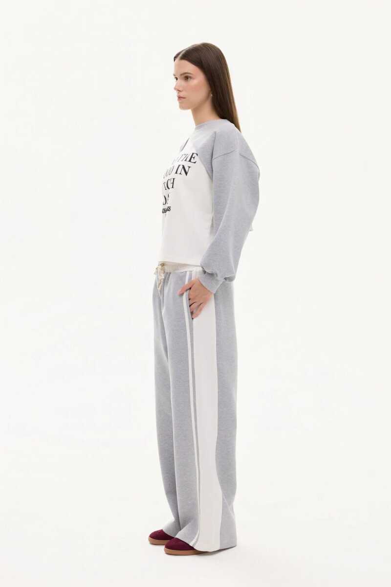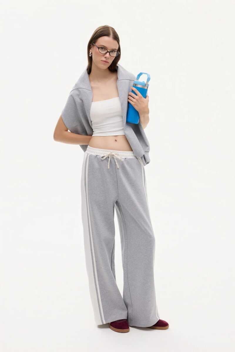 Yanları kontrast renk blok detaylı beli büzgülü ve bağcıklı bol paça yüksek bel cepli rahat kesim eşofman altı.Kumaş BilgisiLycra %5 Pamuklu %20 Polyester %75Yıkama TalimatlarıMakinede 30° Yıkayabilirsiniz Gerektiğinde Klorsuz Çamaşır Suyu Konabilir Kurutma Makinesinde Normal Düşük Isıda Düşük Isıda Ütüleyiniz Kuru Temizleme Az Çözücü