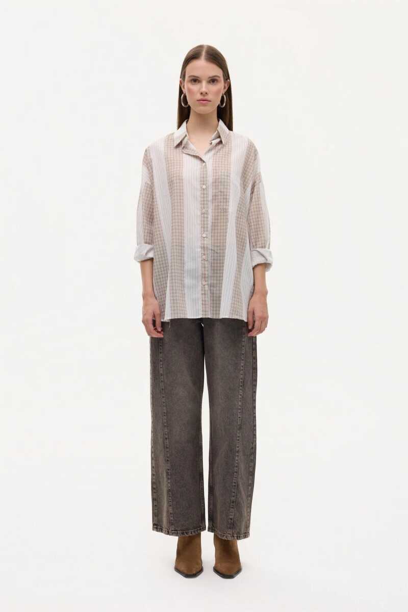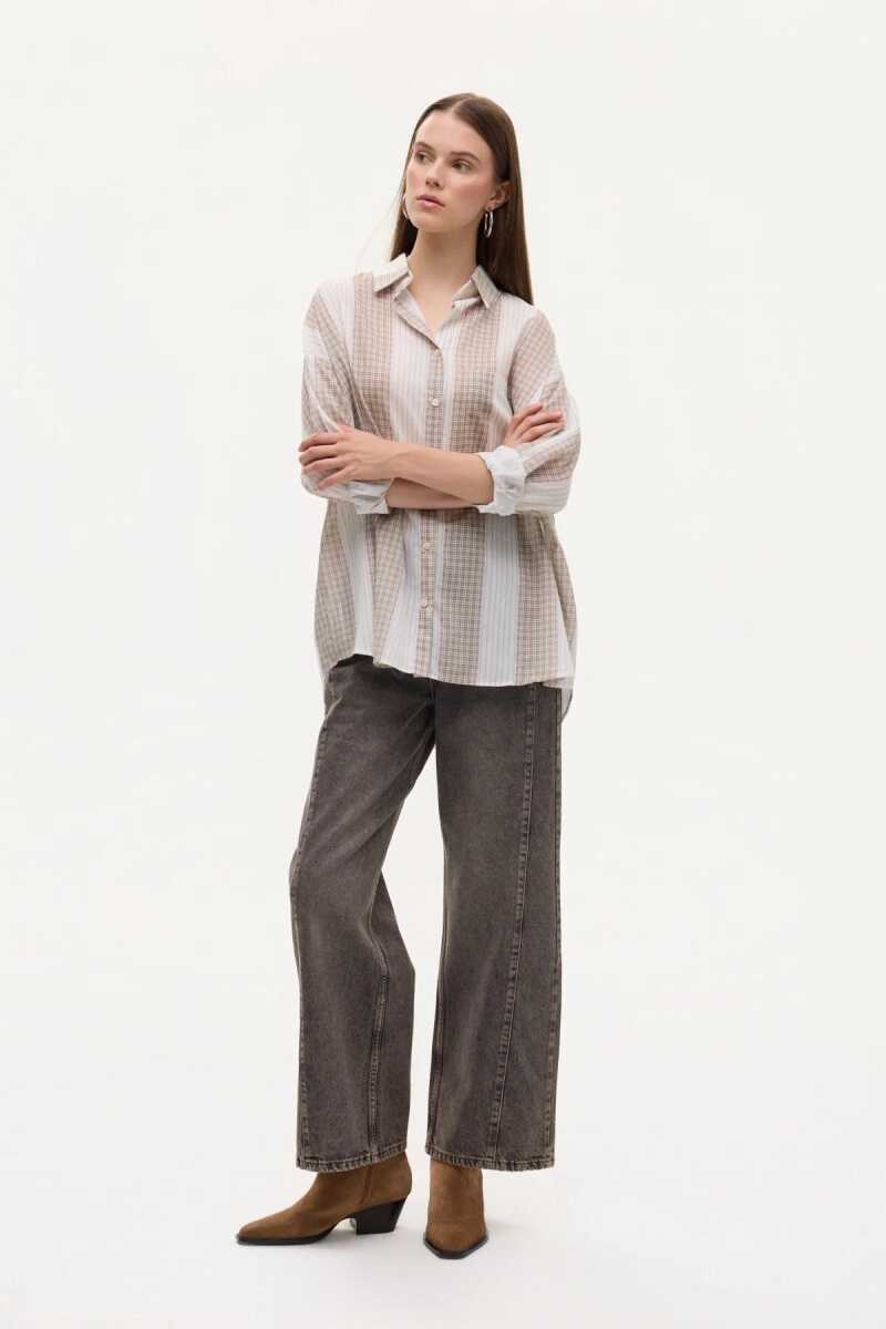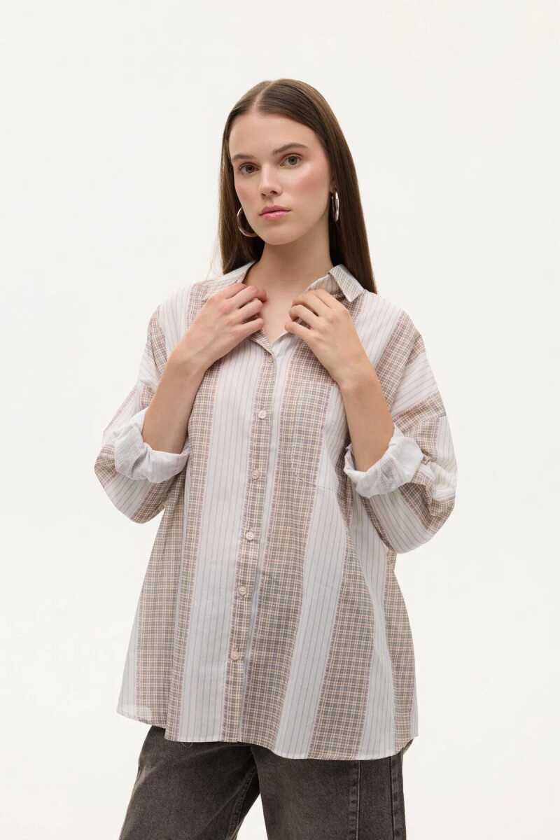 Quzu Matchli Oversize Kadın Gömlek 26KGML01003