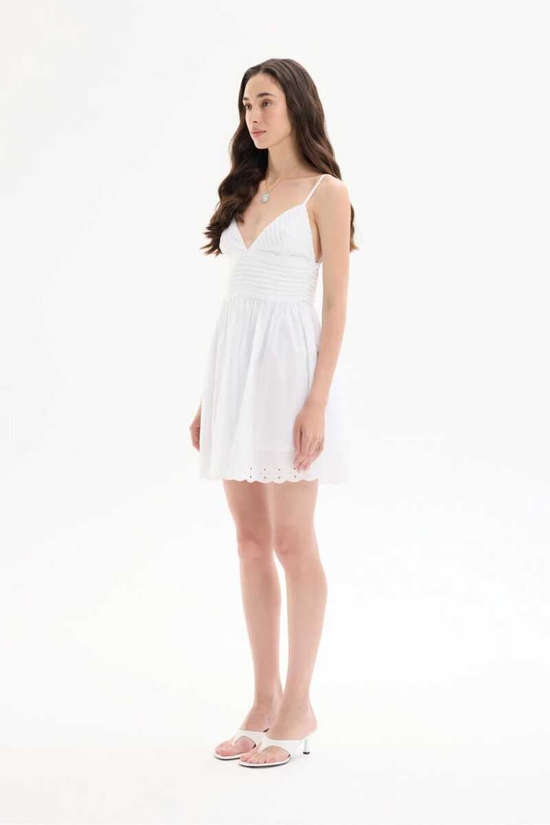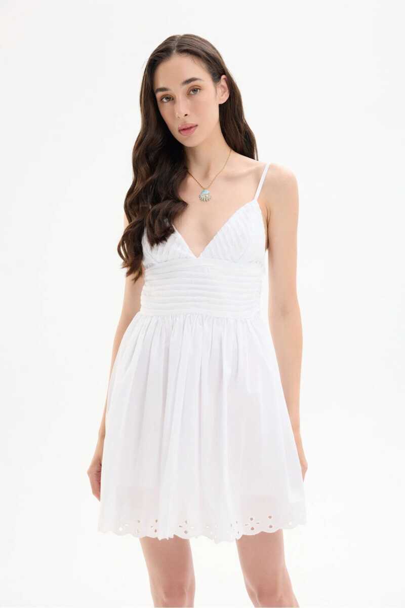 İçi kendi renginden astarlı ince ayarlanabilir askılı sırtı fermuar kapamalı v yaka kırışık doku detaylı üst gövde etek ucu brode işlemeli mini boy elbise.Kumaş BilgisiPamuklu %100Yıkama TalimatlarıMakinede 30° Yıkayabilirsiniz Gerektiğinde Klorsuz Çamaşır Suyu Konabilir Kurutma Makinesinde Normal Düşük Isıda Düşük Isıda Ütüleyiniz Kuru Temizleme Az Çözücü