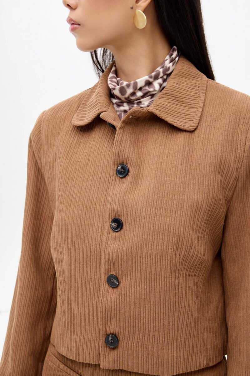 İçi kendi renginden astarlı gömlek yaka uzun kollu omzu vatka detaylı düğme kapamalı cepsiz fitilli kadife kumaştan kısa ceket.Polyester %100YIKAMA TALİMATIMakinede 30° Yıkayabilirsiniz Gerektiğinde Klorsuz Çamaşır Suyu Konabilir Kurutma Makinesinde Normal Düşük Isıda Düşük Isıda Ütüleyiniz Kuru Temizleme Az Çözücü