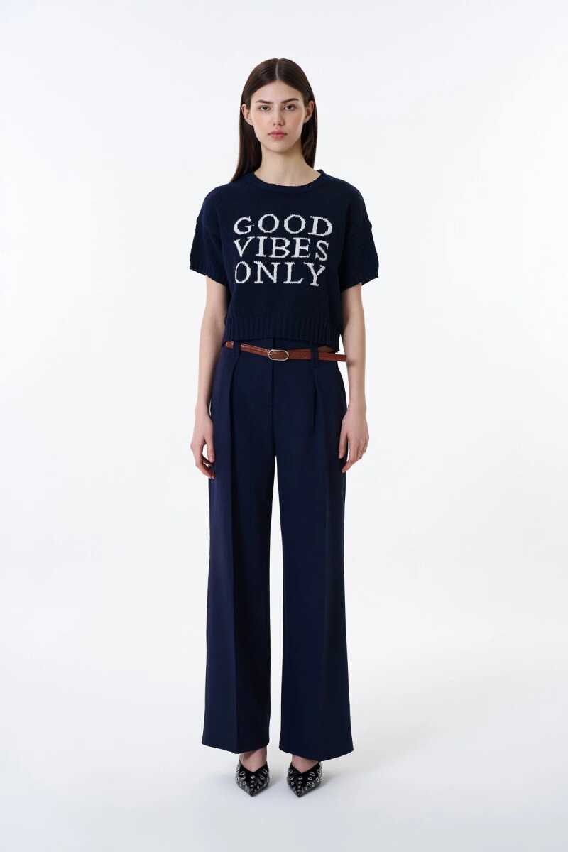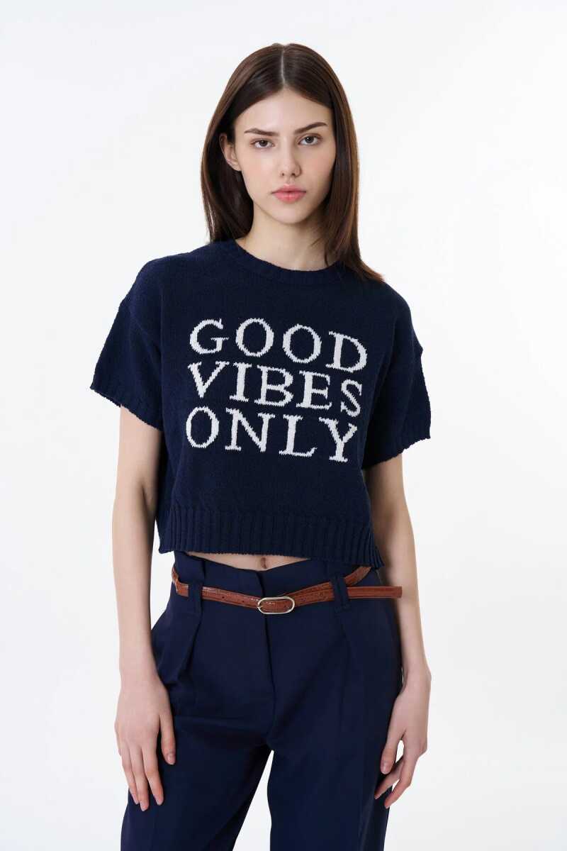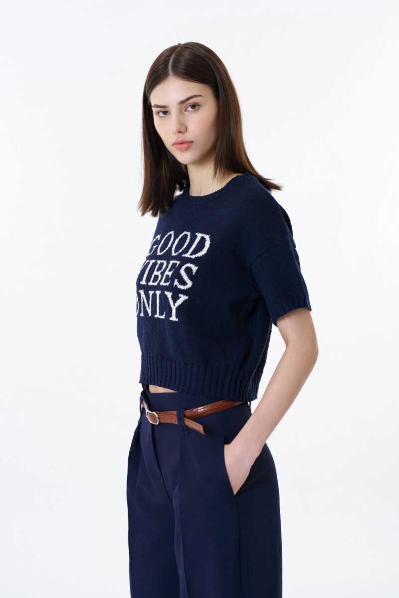Quzu Quzu Yazı Detaylı Kadın Triko
